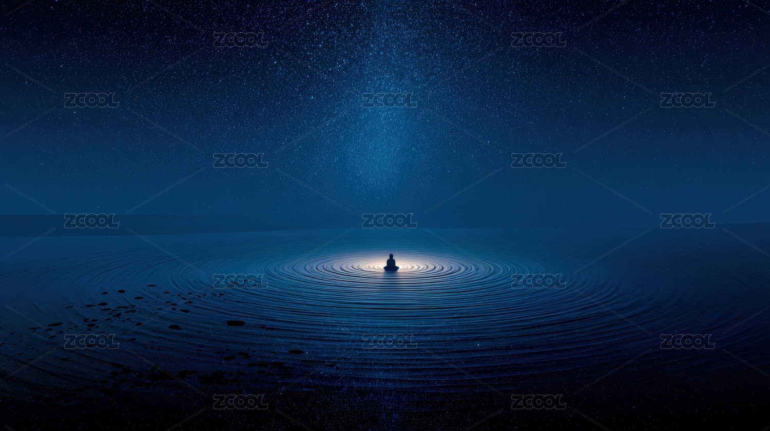 夜空下水面上的孤独身影