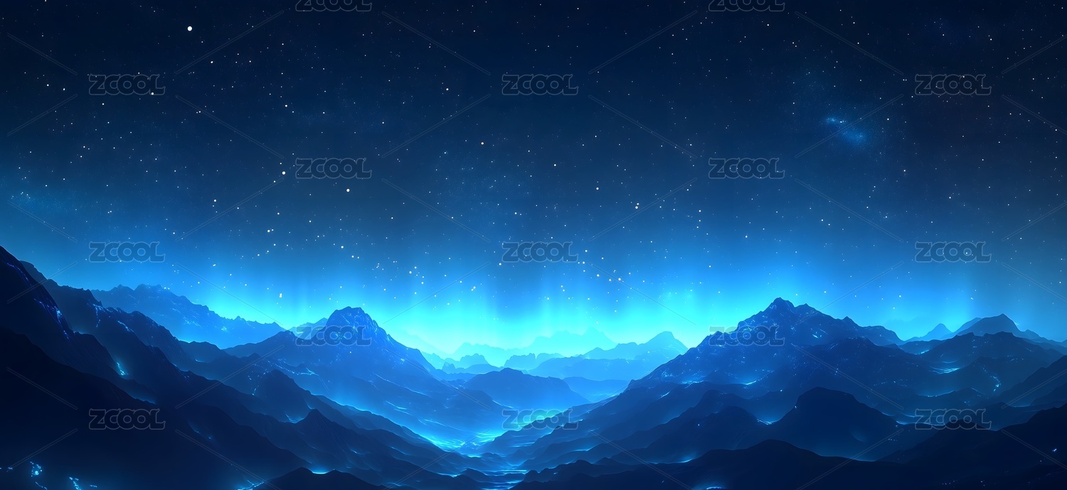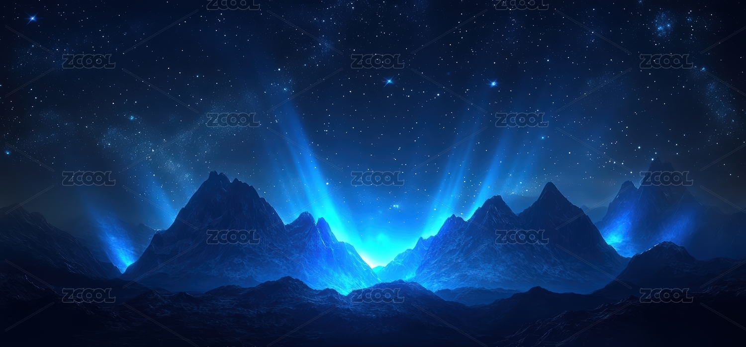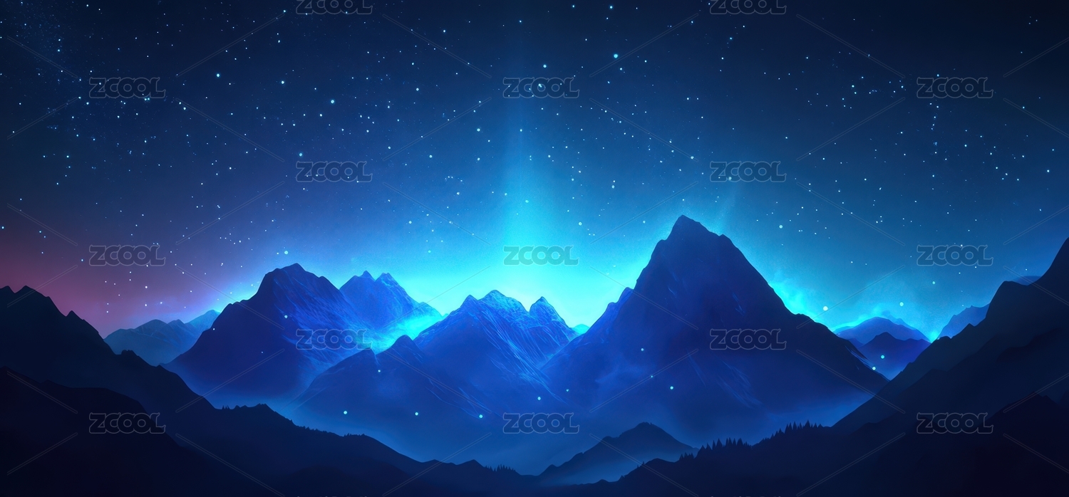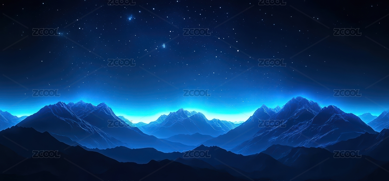夜景, 山脉,山峰, 蓝色, 奇幻, 光芒, 神秘, 星空, 夜晚, 寒冷