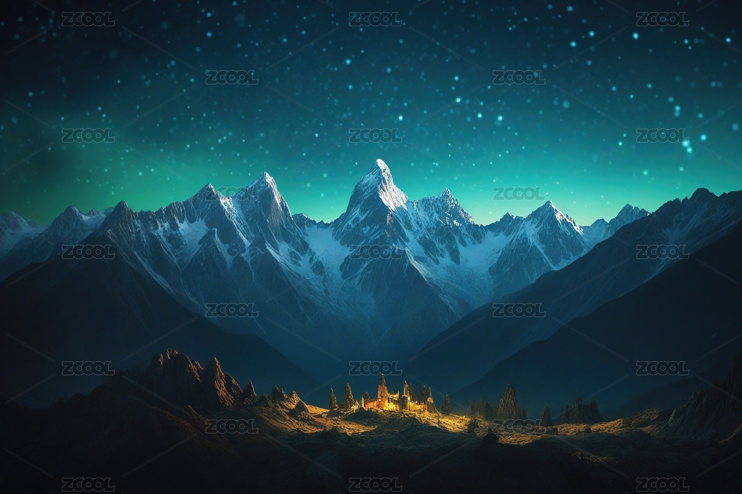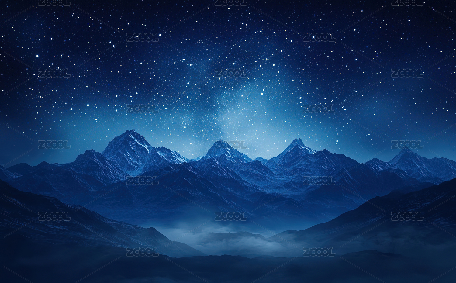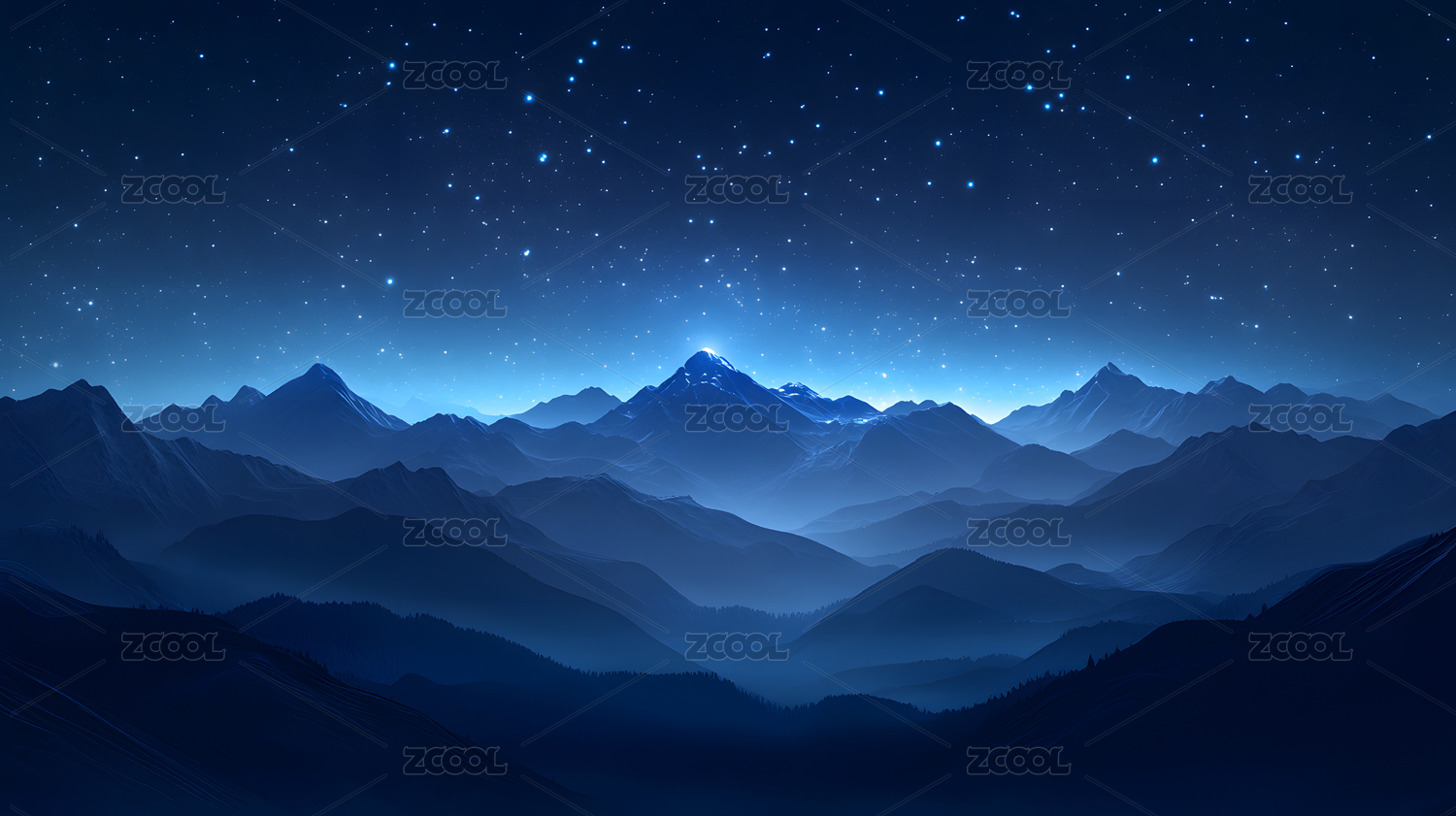 夜景, 山脉,山峰, 蓝色, 奇幻, 光芒, 神秘, 星空, 夜晚, 寒冷