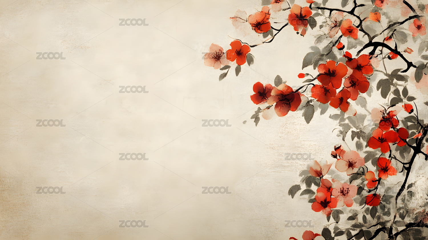 水墨风格红花背景图