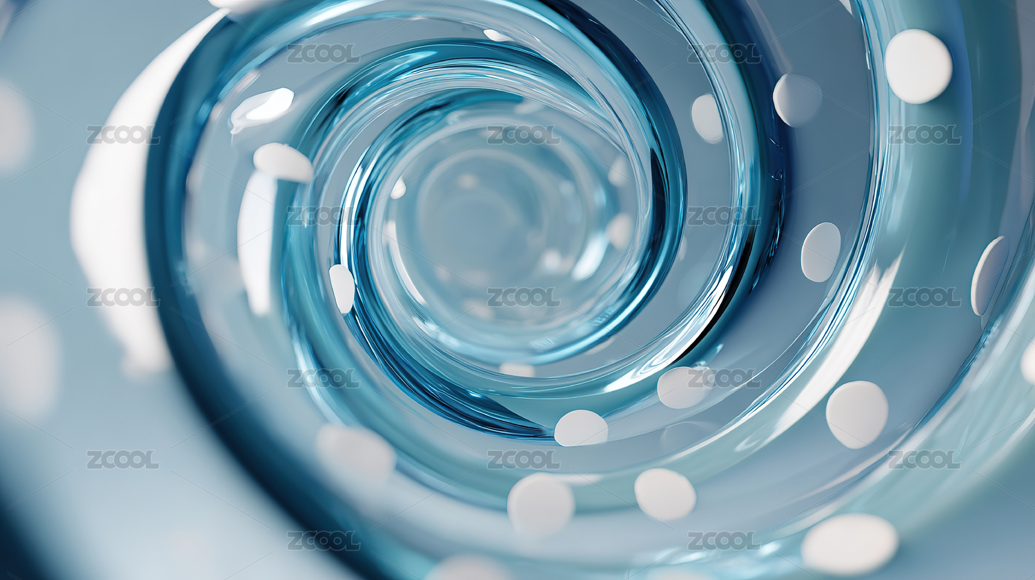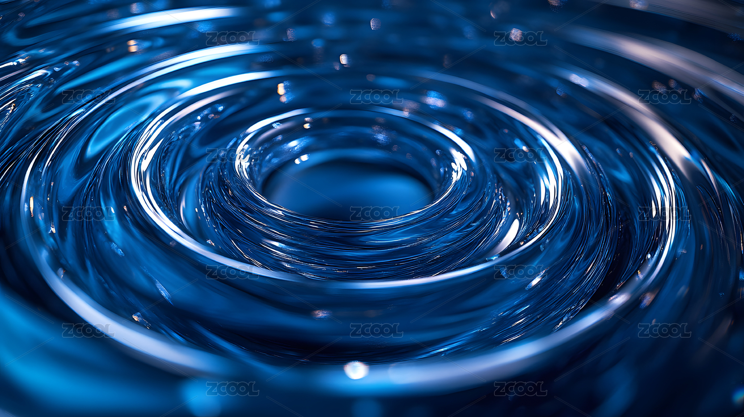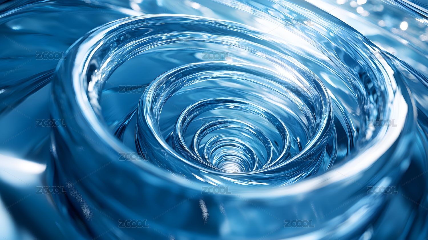 蓝色清澈透明水面旋转漩涡3D立体插画