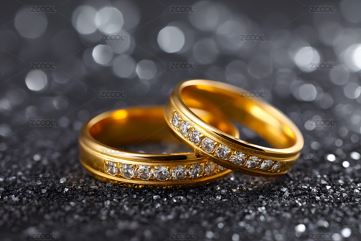 璀璨金婚对戒特写