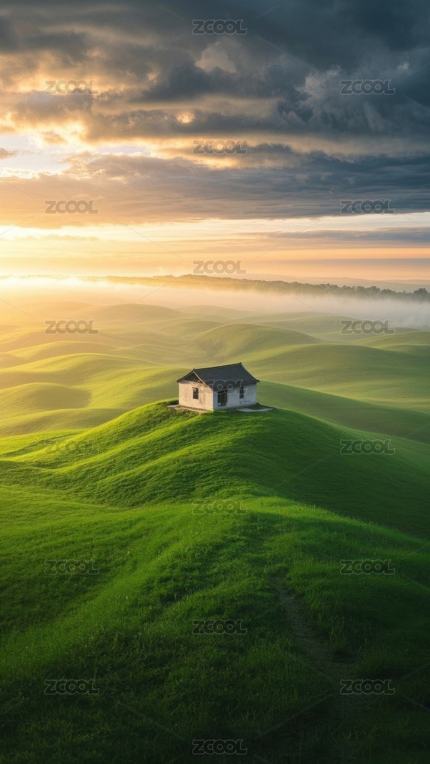 广袤的平原上,一座孤独的小屋,营造出宁静