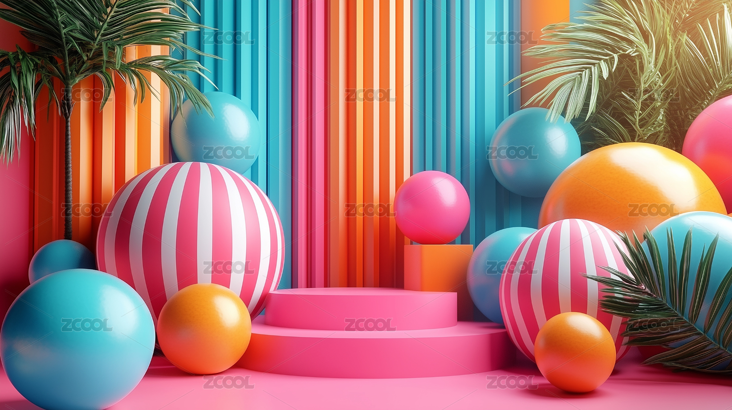 3D,风格,展台,背景,背景墙,电商,植物,热带,壁纸,艺术