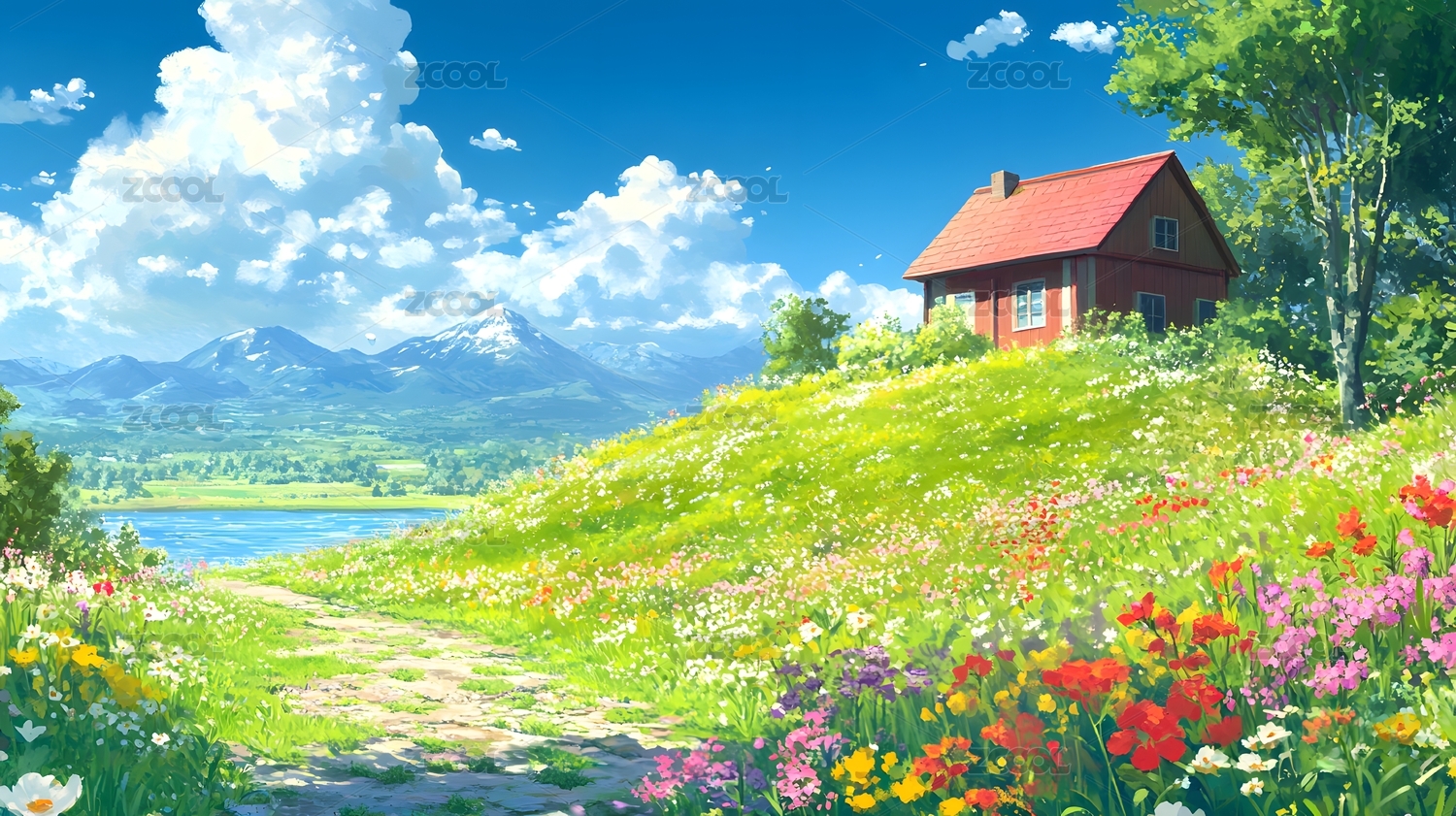复古日漫风景草地农业自然户外旅游夏季旅行