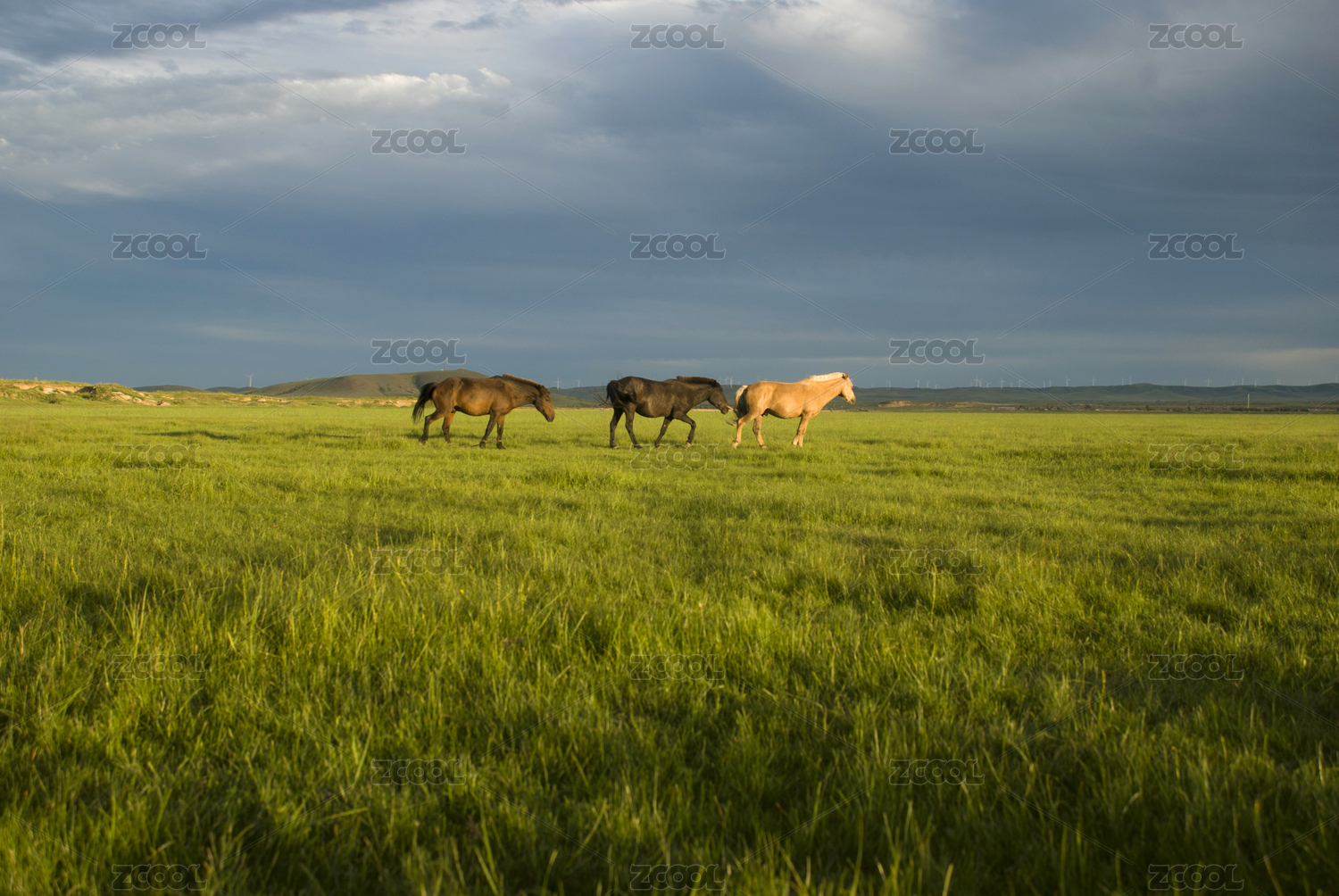 夏天草原上放牧的马儿