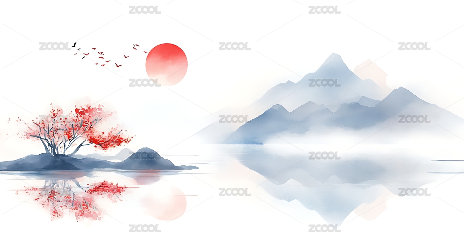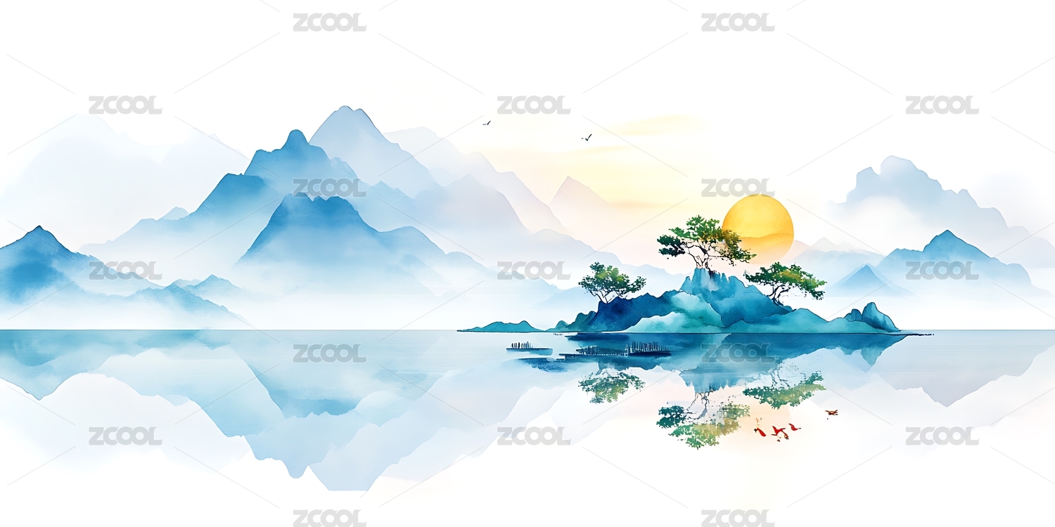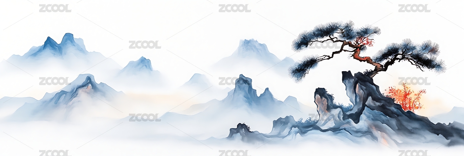 新中式,高端,大气,山水,国风,写意,风景,山脉,绿色, 山峦