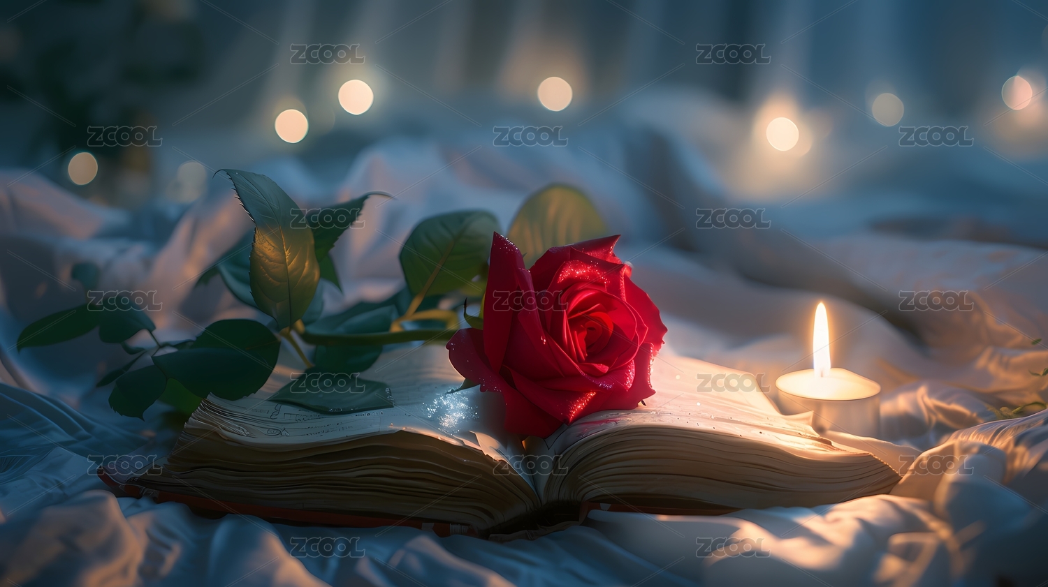 红玫瑰与打开的书