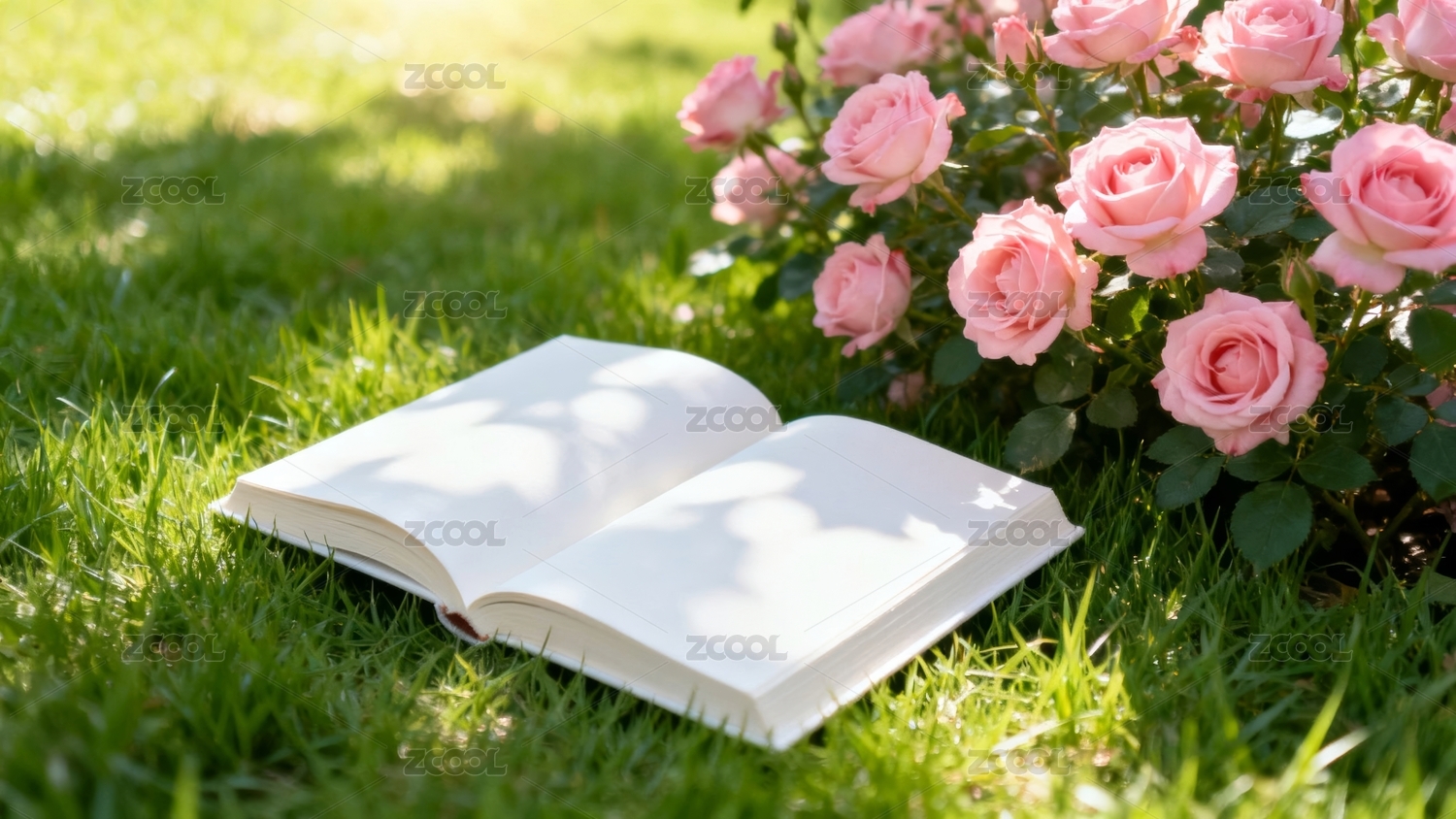 阳光下书本与玫瑰的静谧时光