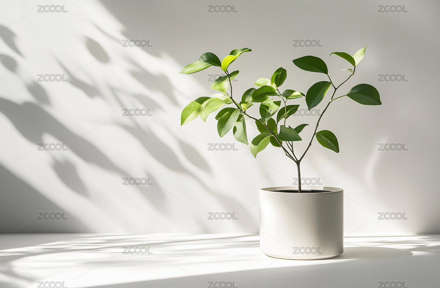 绿植木质花盆阳光斑驳