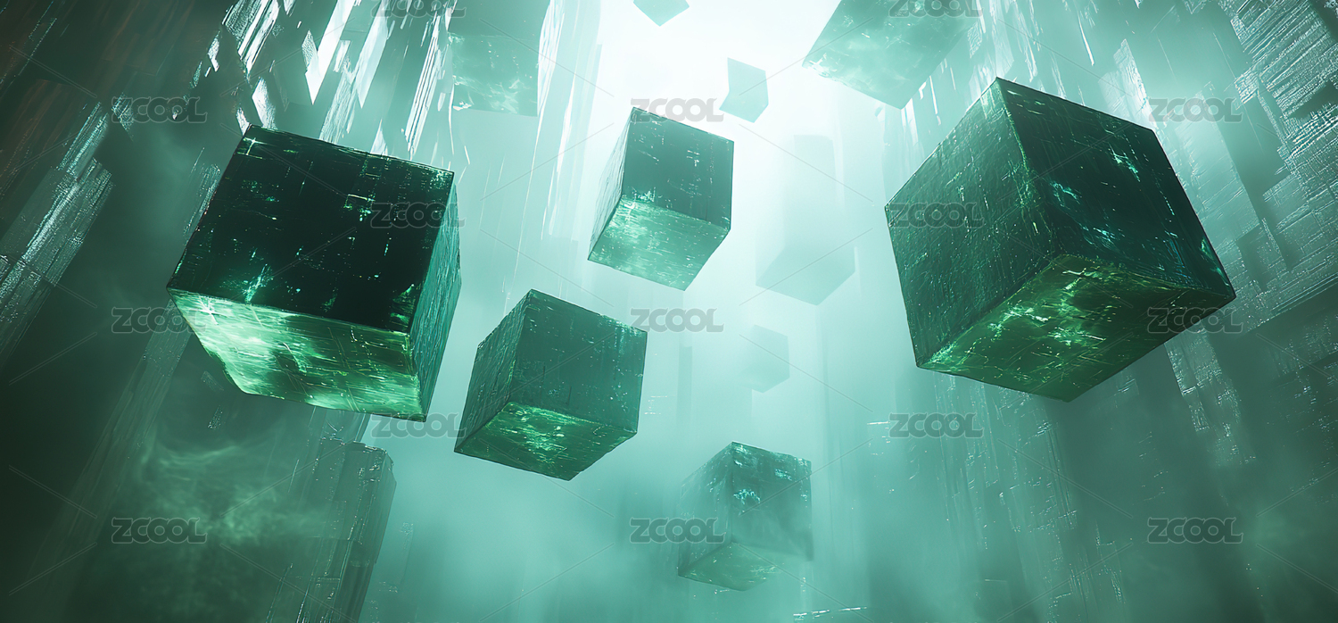 3D绿色科技几何体概念背景