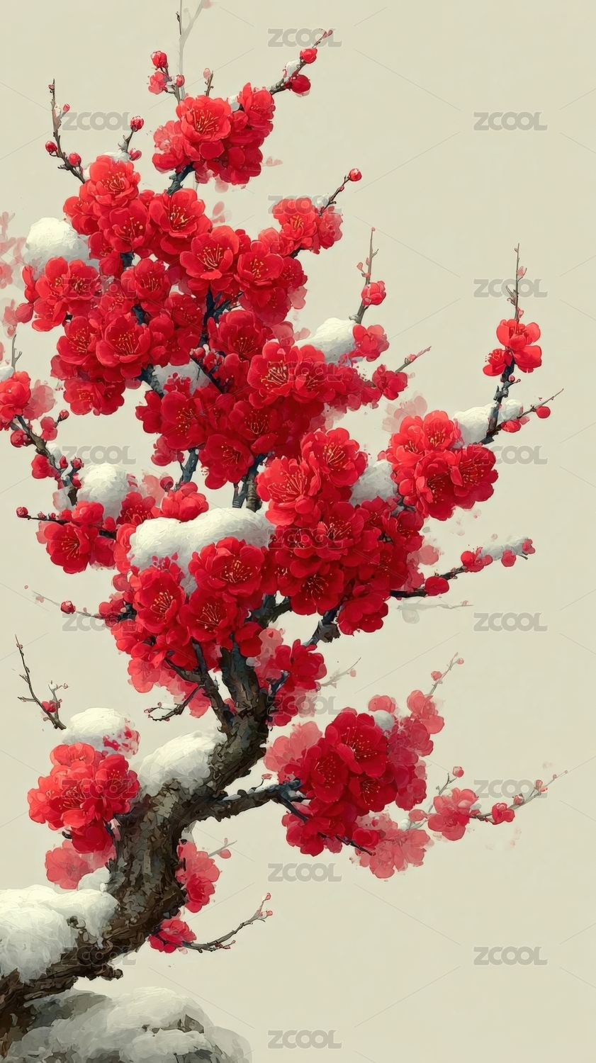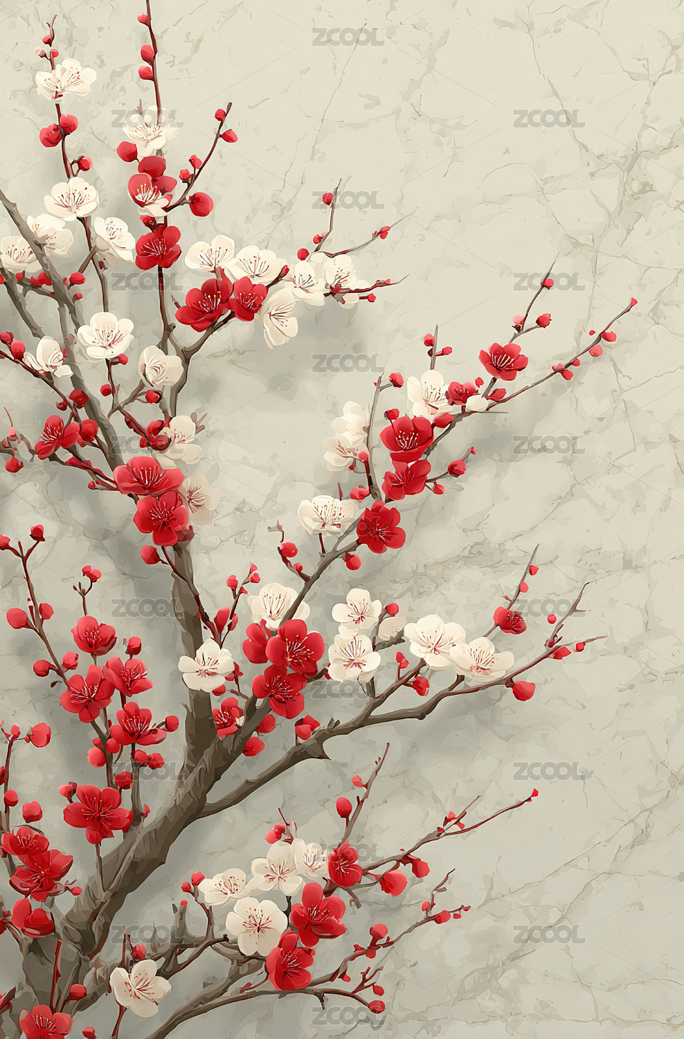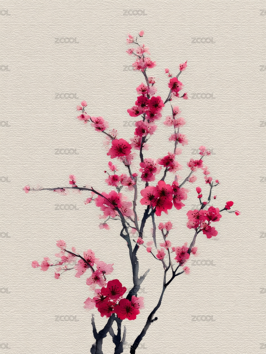 梅花,花,植物,树,自然,工笔画,国画,古风,壁纸,插画