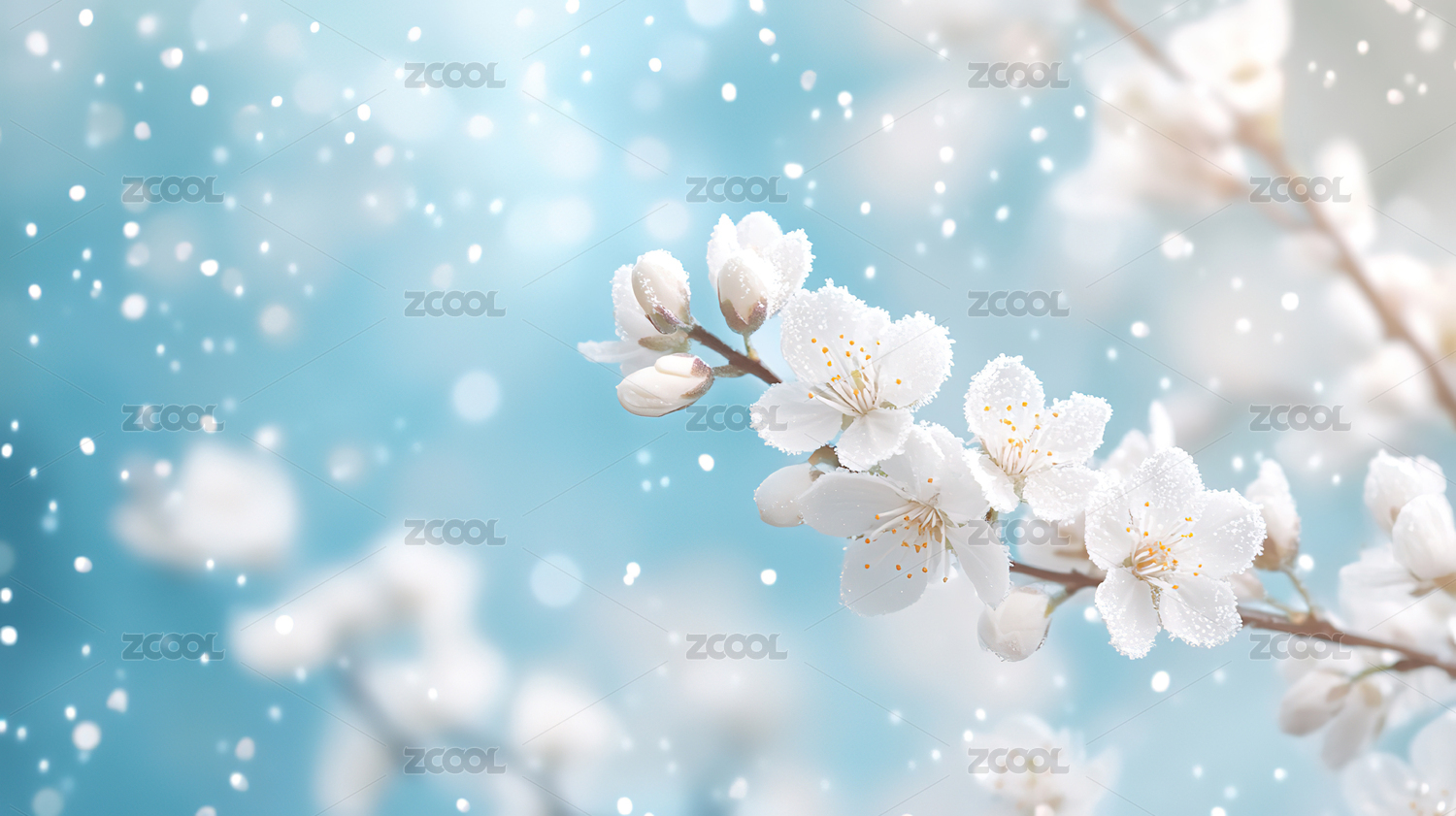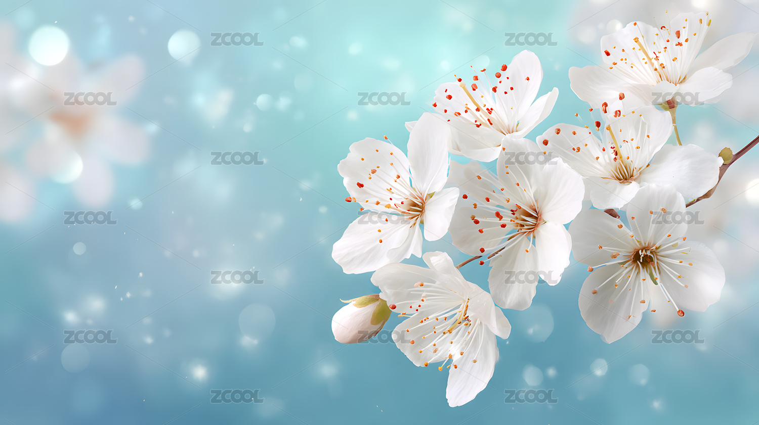 背景,视觉,元素,色彩,蓝底,白樱,花朵,花瓣,花蕊,花枝