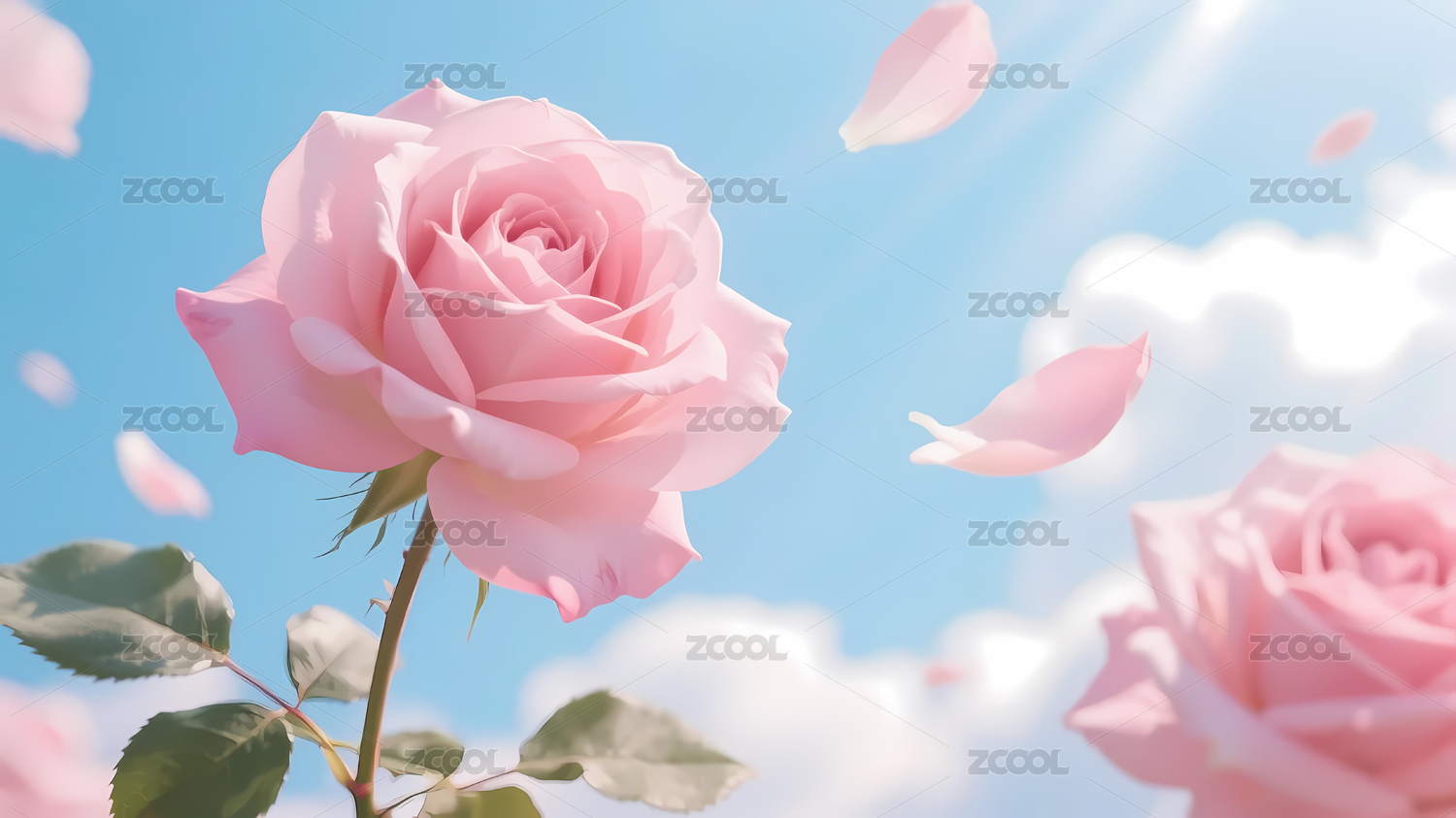 唯美,花,鲜花,玫瑰花,蓝天,白云,自然