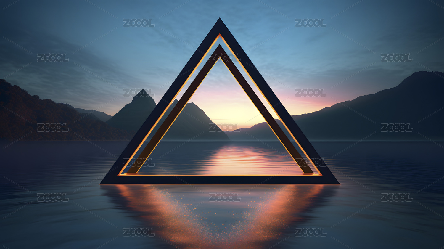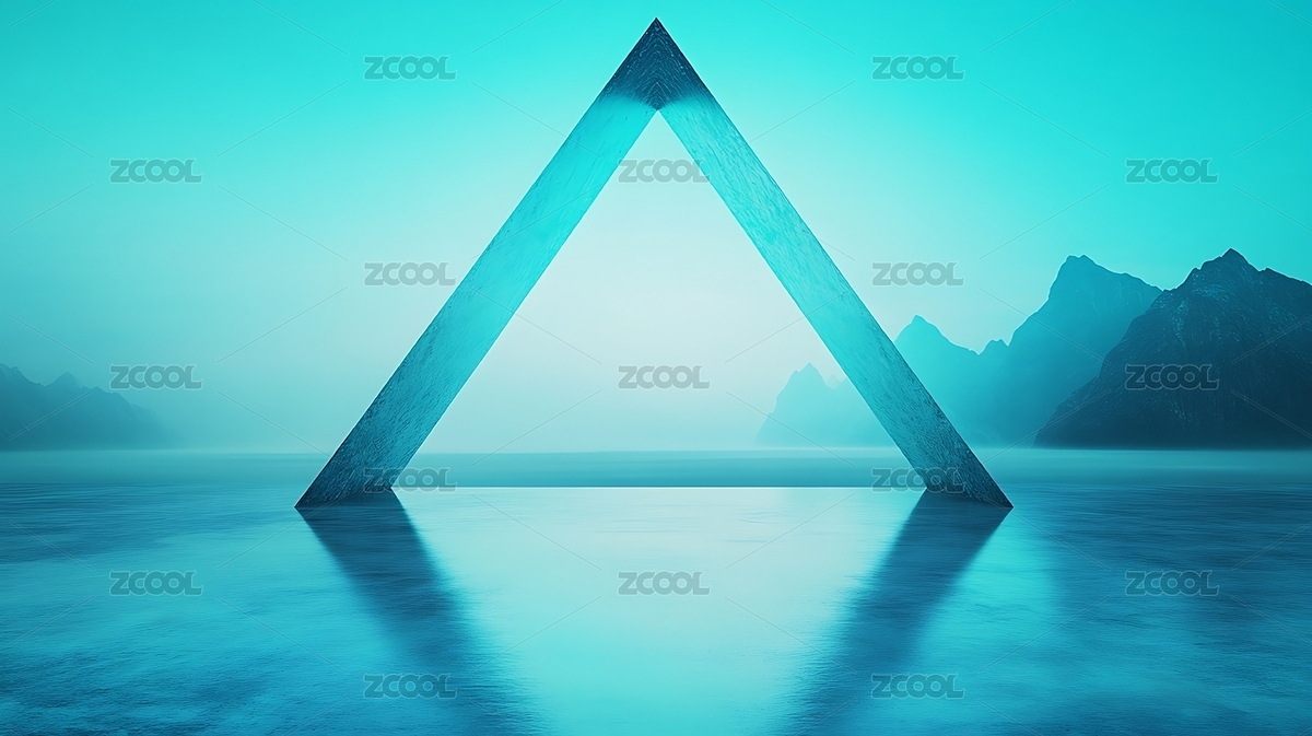 蓝色,倒影,水面,反射,未来感,结构,宁静,湖泊,三角,朦胧