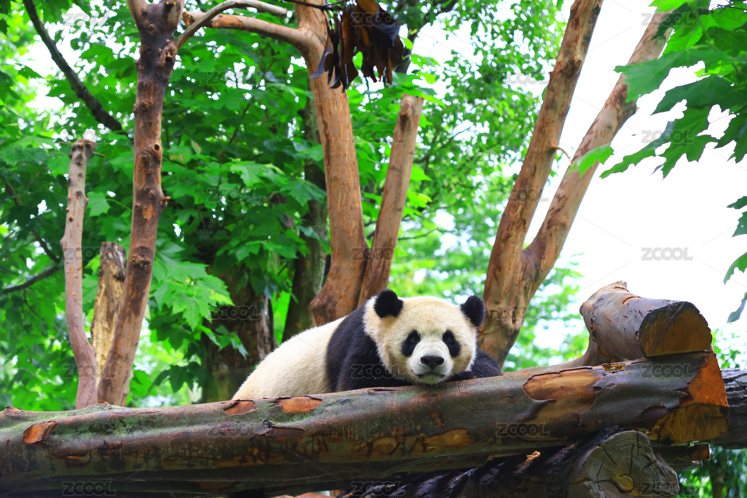 躺在大树上休息的可爱大熊猫特写