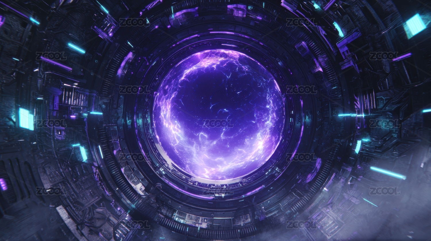 科幻隧道中的紫色星体