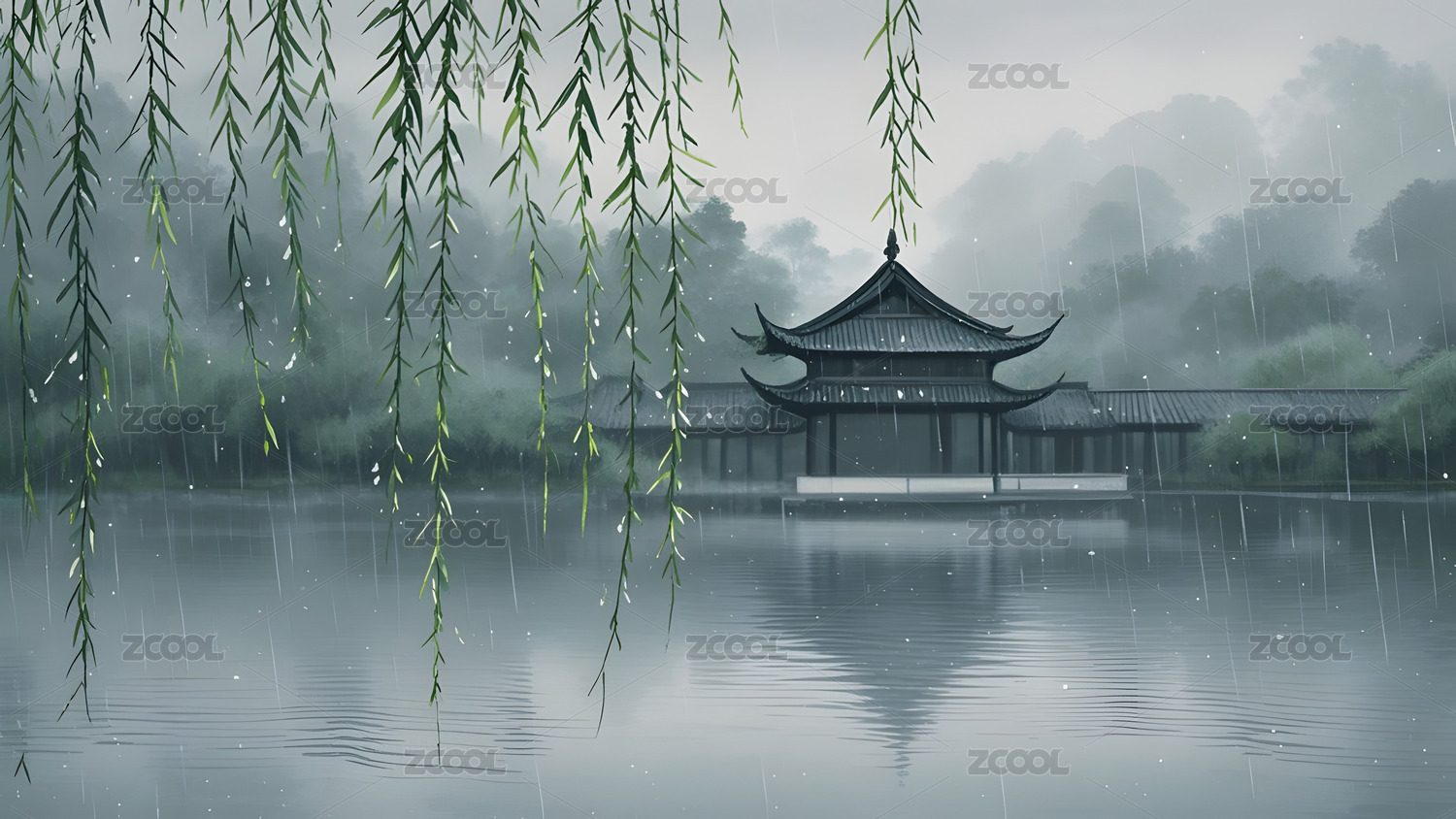 景色,祥和,宁静,中国风,氛围,意境,水墨,山水,亭子,古色古香