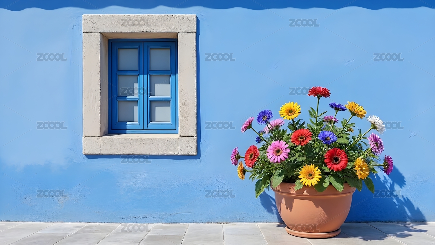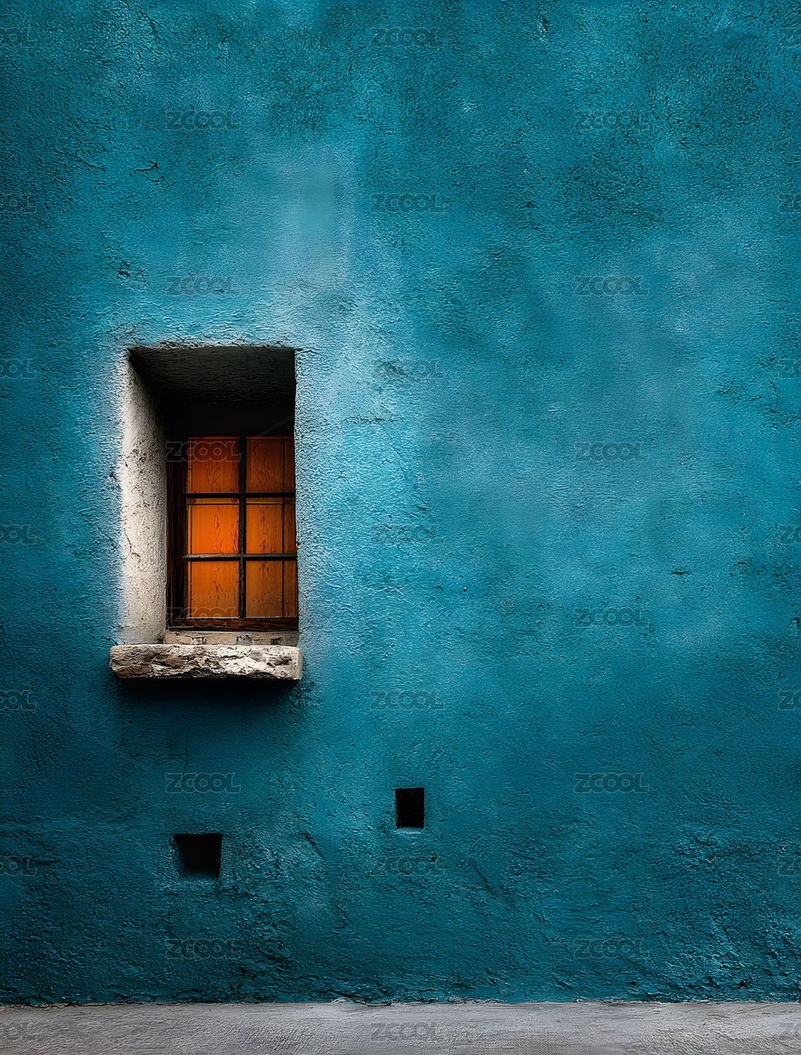 蓝色墙壁窗户 光影斑驳 怀旧静谧