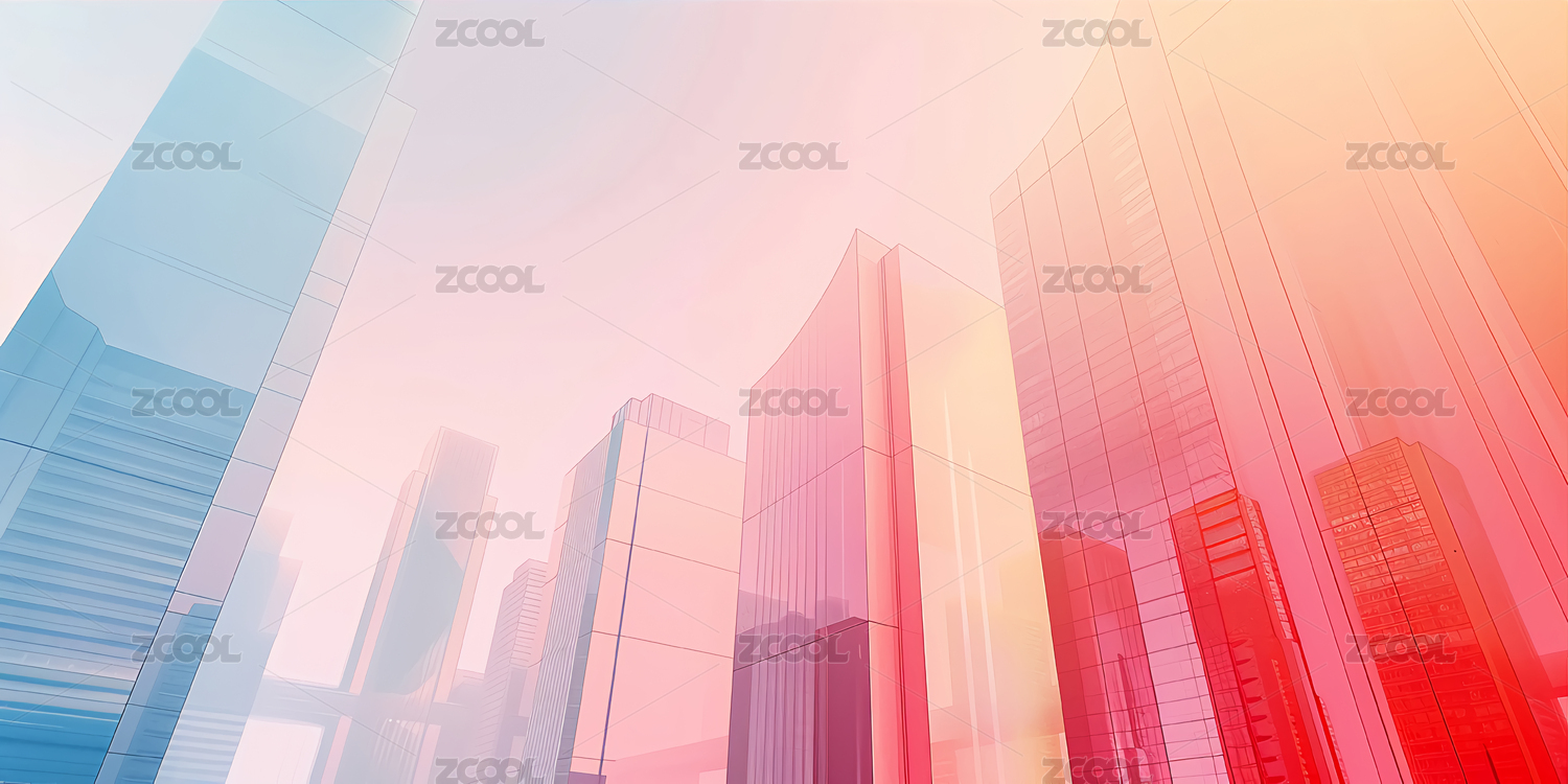 商务极简蓝红色城市天际线背景