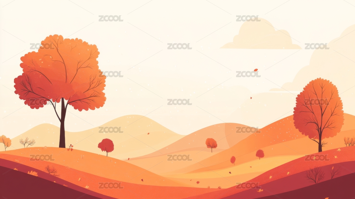 秋天秋季户外自然风光风景卡通漫画插画