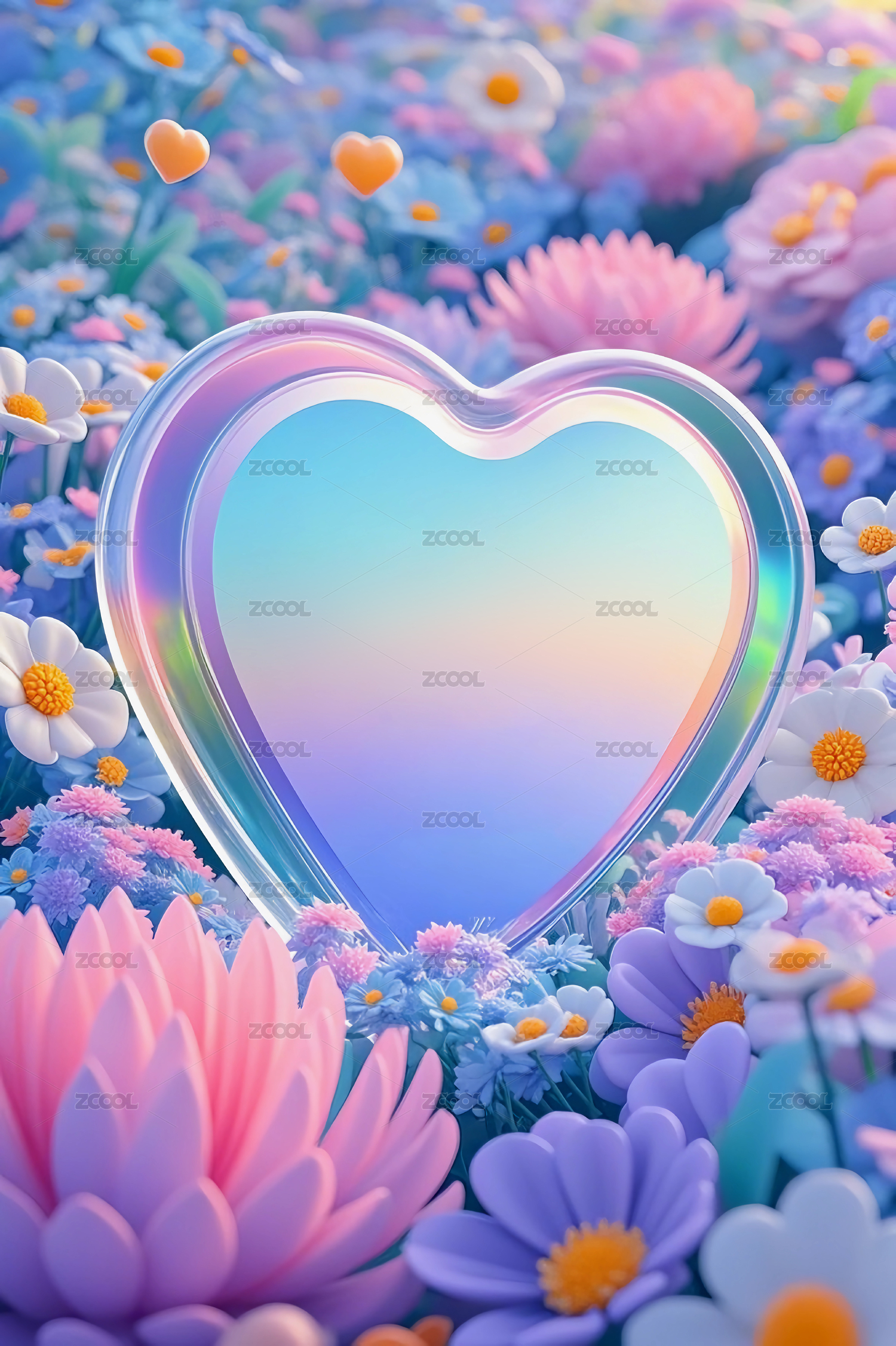 心形空标签鲜花背景墙易拉宝海报的插画艺术