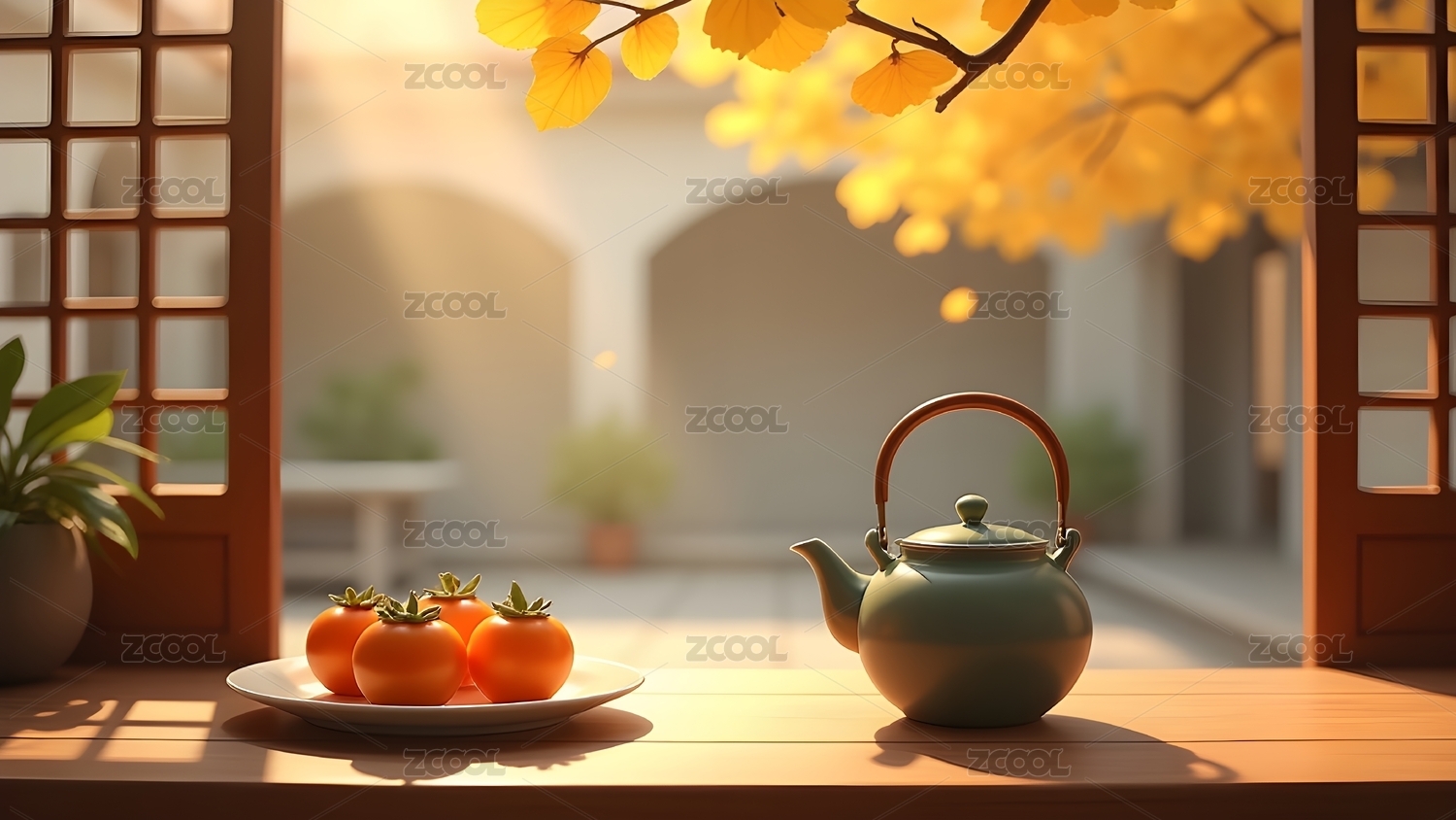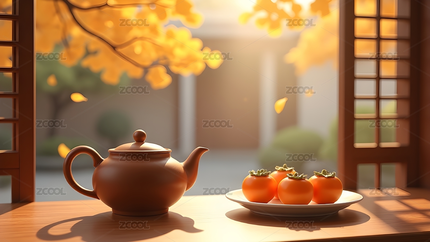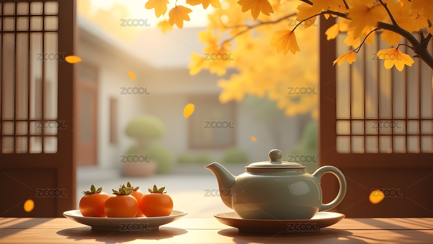 秋日桌前的茶果景致