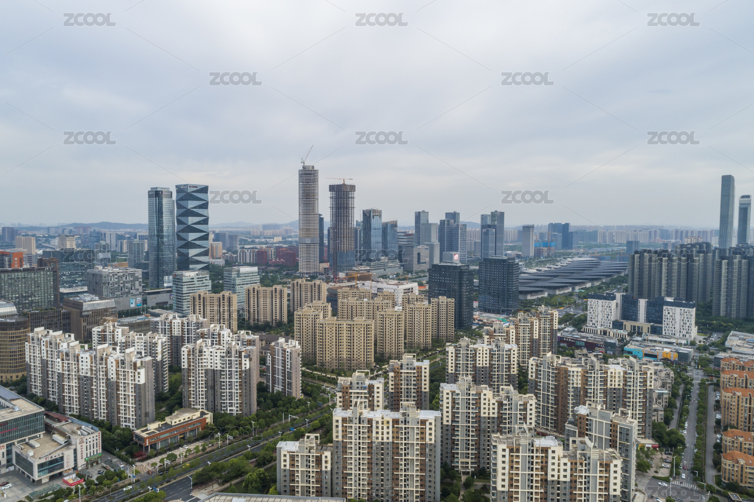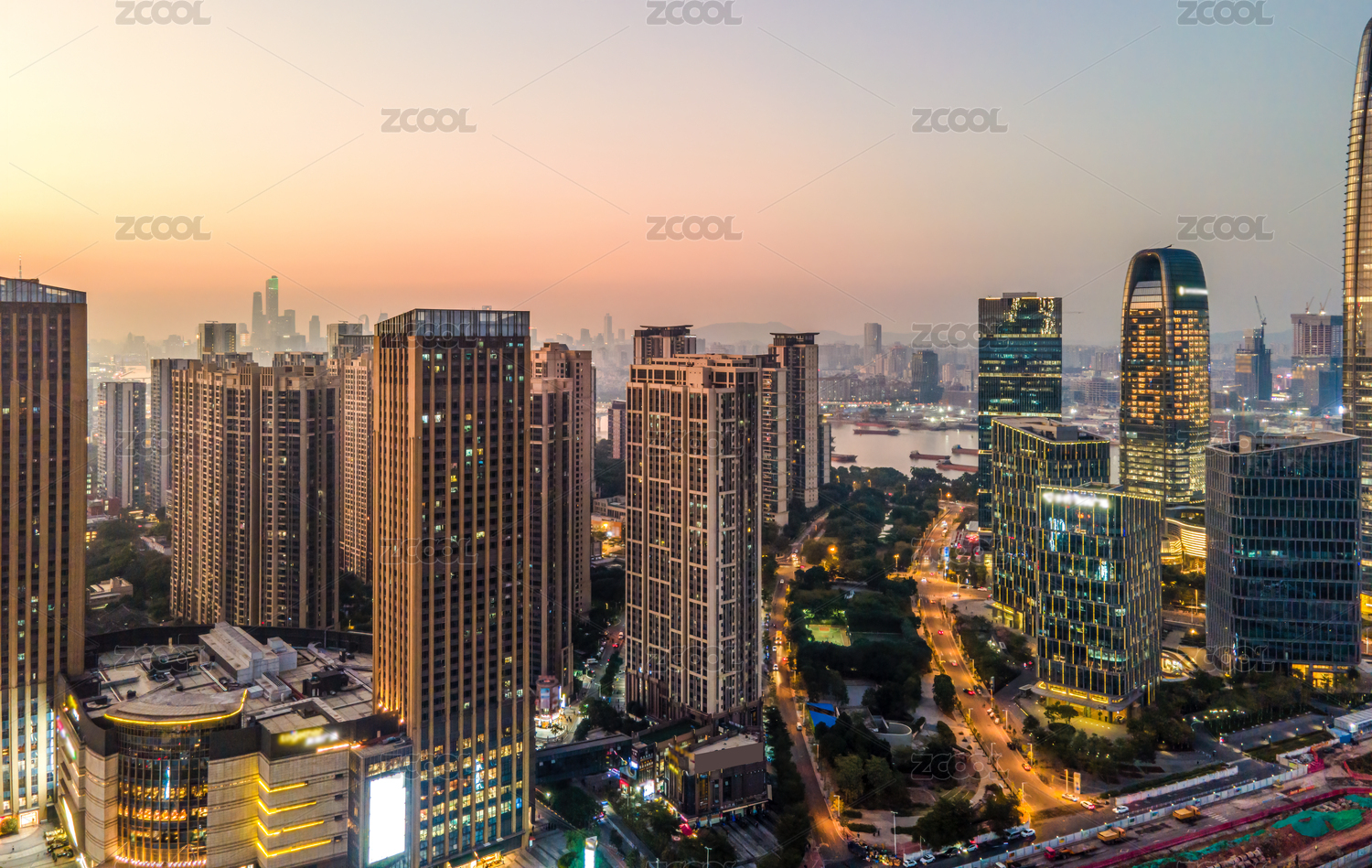 武汉市汉口区长江边金融中心高楼大厦建筑