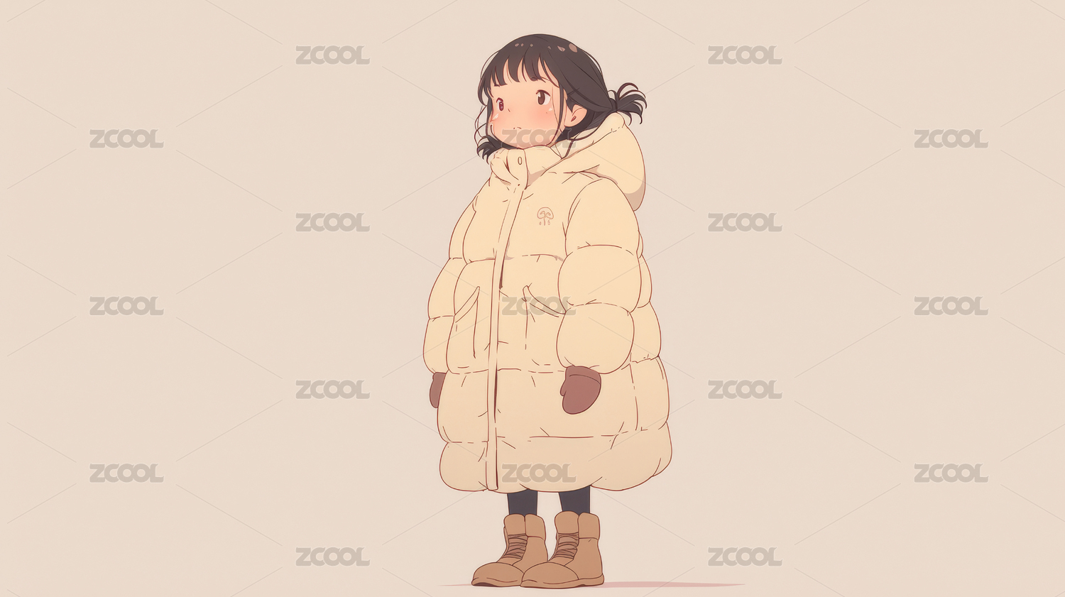 白色背景下坐在秋叶堆里的卡通女孩插画
