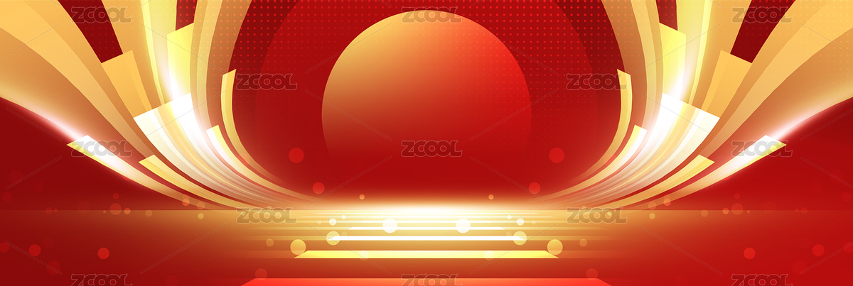 红色舞台激情金色光线闪亮背景