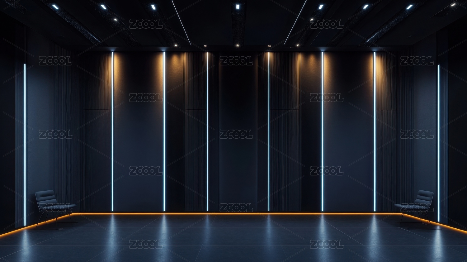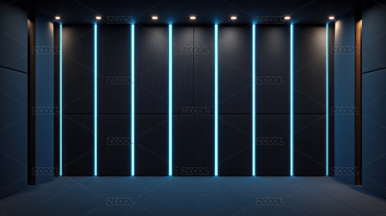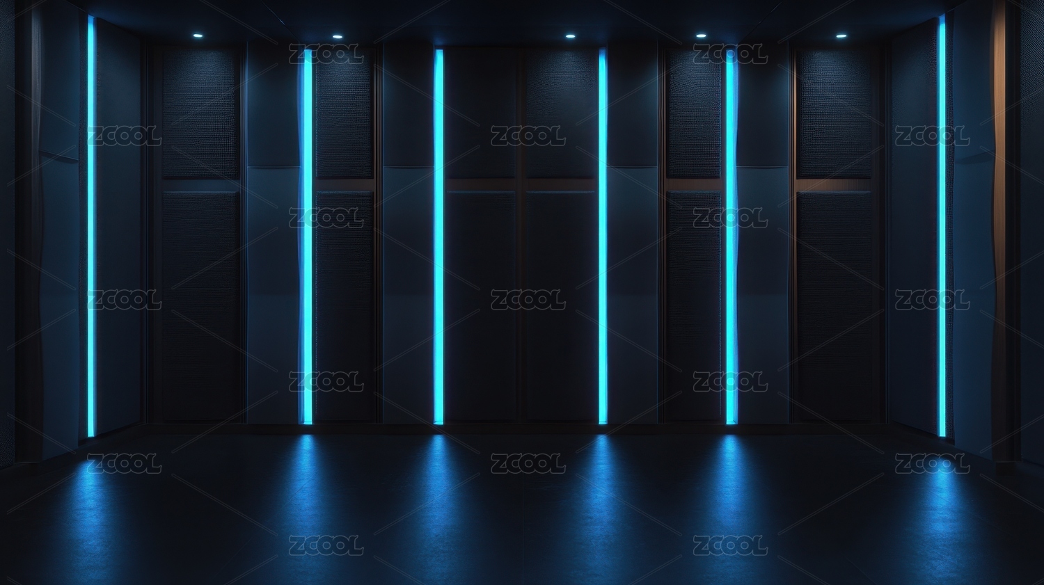 现代室内空间中的蓝色灯光墙