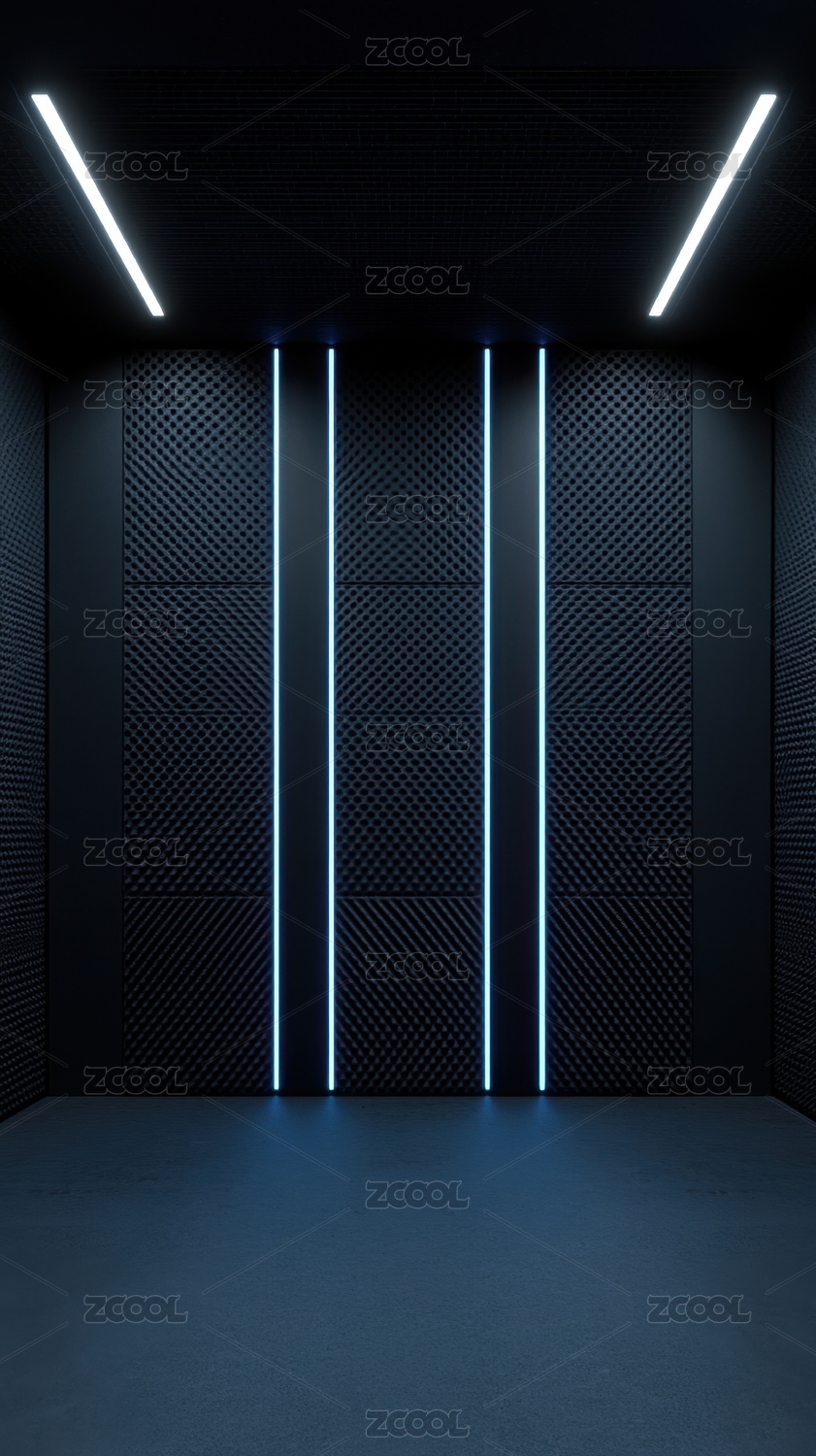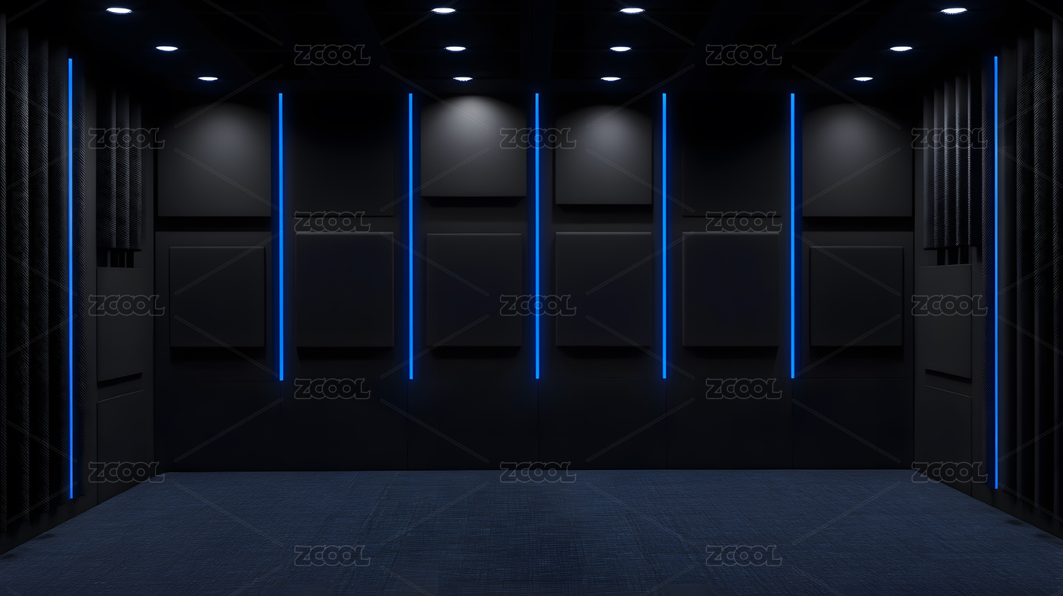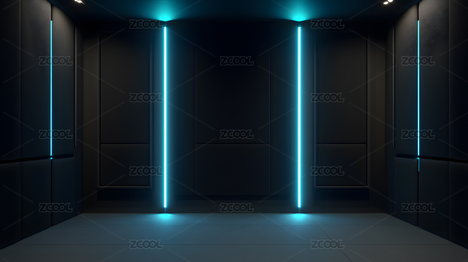 现代室内空间中的蓝色灯光墙