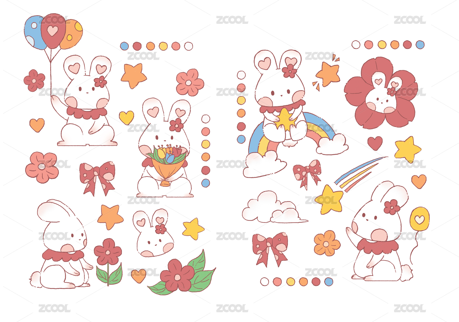 一组矢量卡通小动物插画-雨晴的小兔正能量日记day1