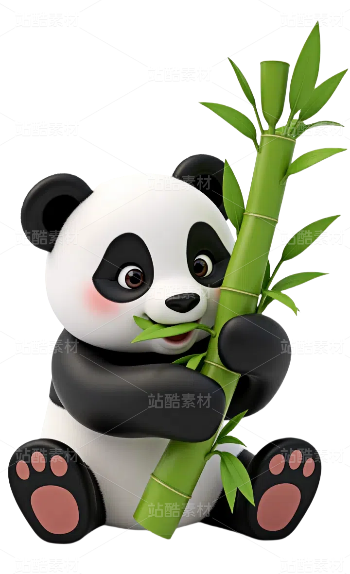 3D风格 大熊猫吃竹子地球日濒危保护动物 免抠免费海报
