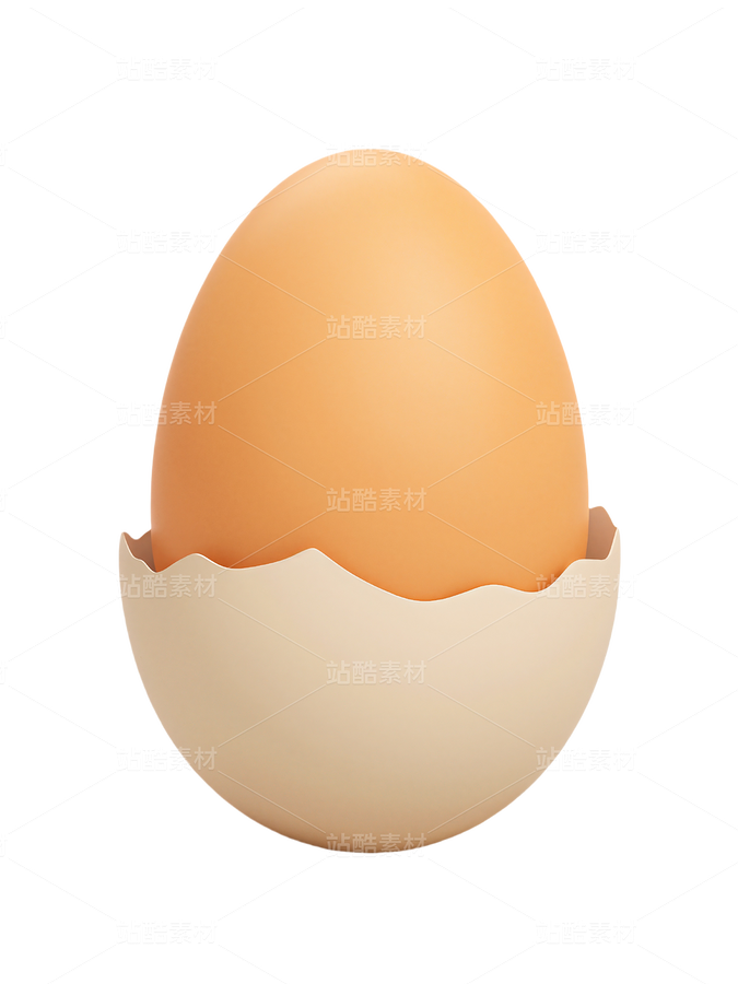 3D风格打开个半个生鸡蛋PNG免抠素材
