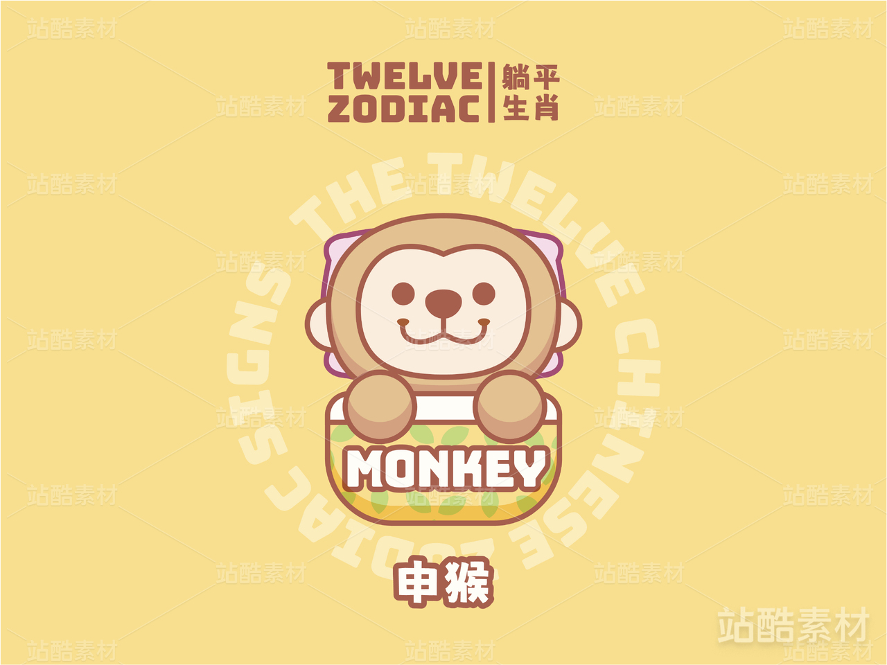 中国十二生肖之萌版猴子卡通矢量元素插画