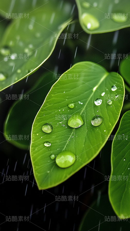 雨后绿叶上的水滴