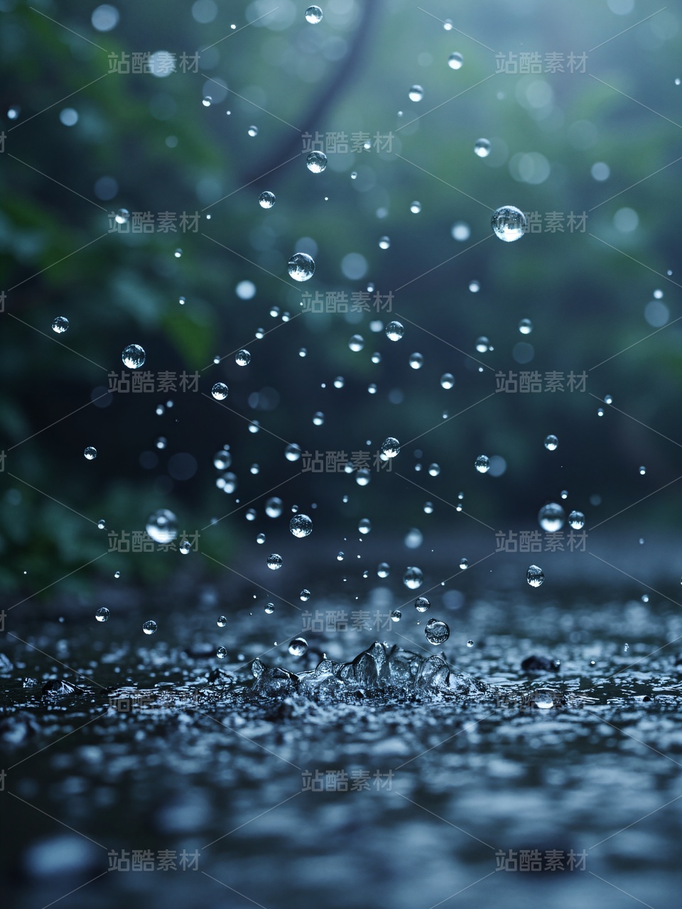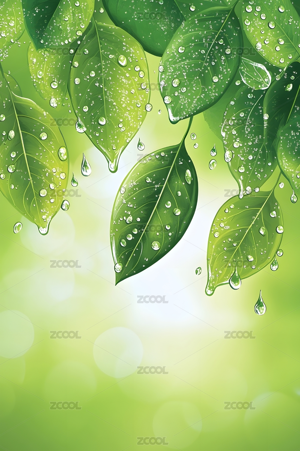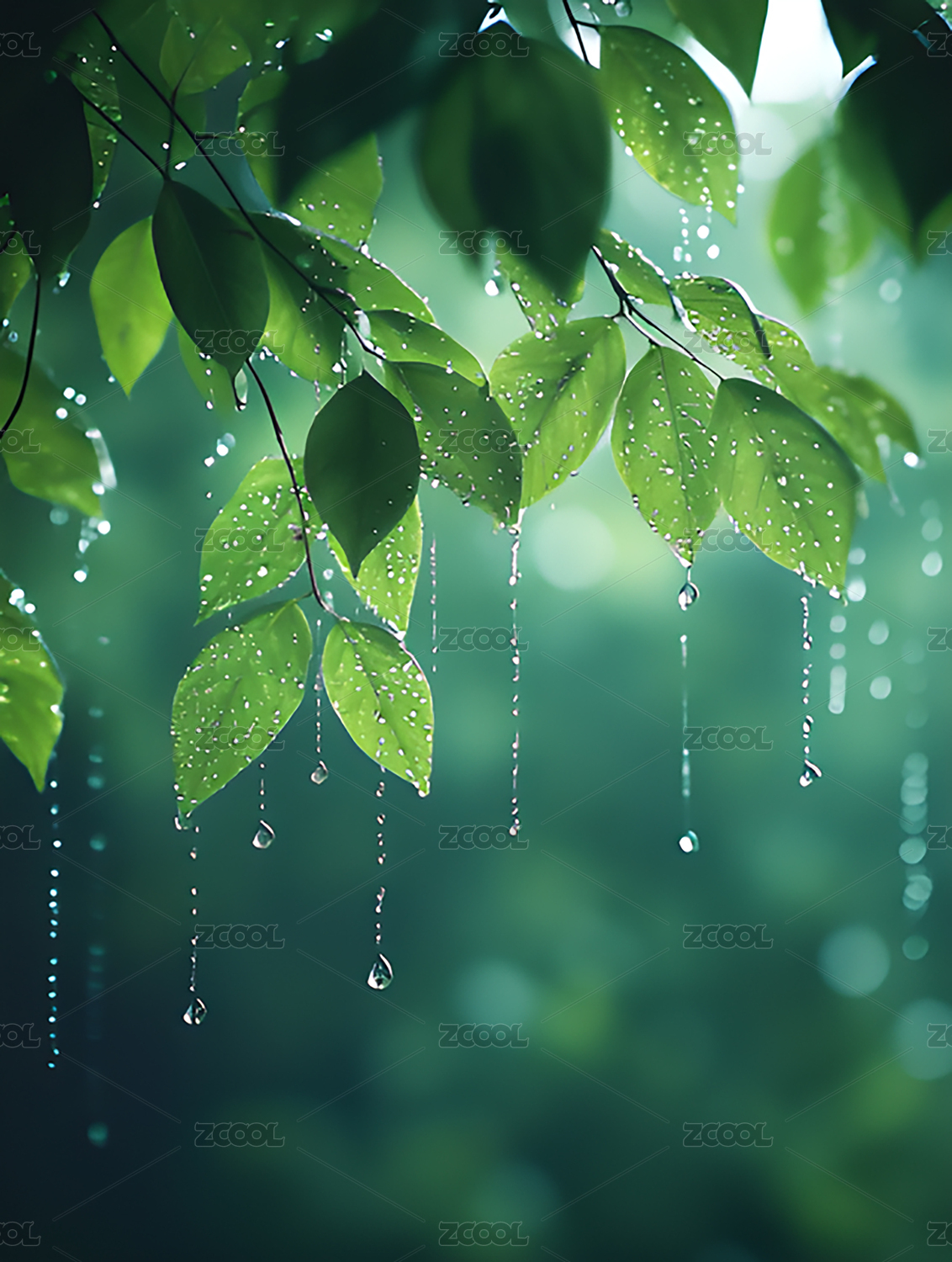 雨中绿叶飘落
