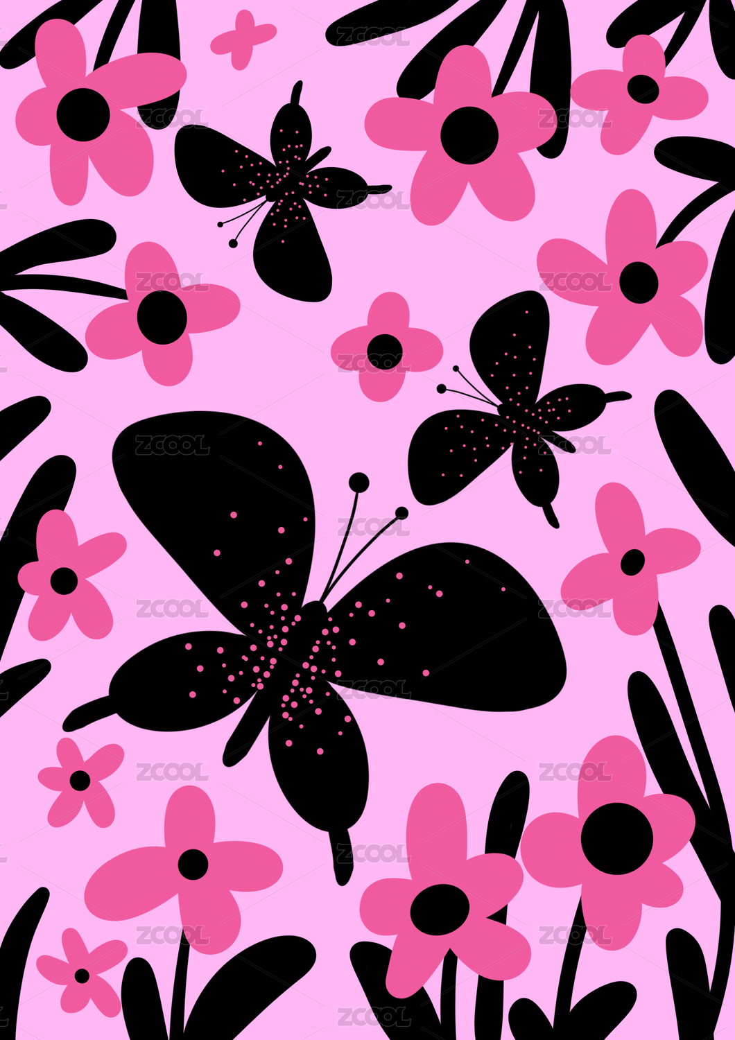 原创设计 梦幻插画 蝴蝶 花朵 浪漫美学 手机壁纸