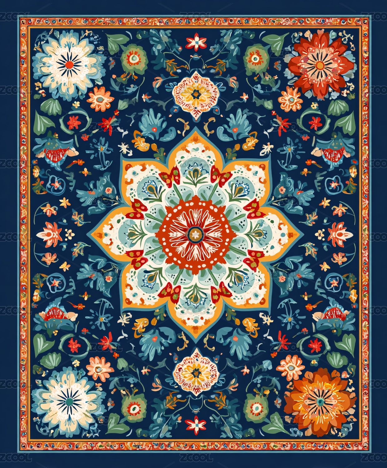 欧美,蓝色,粉色,纹样,插画,图案,植物,复古,素材