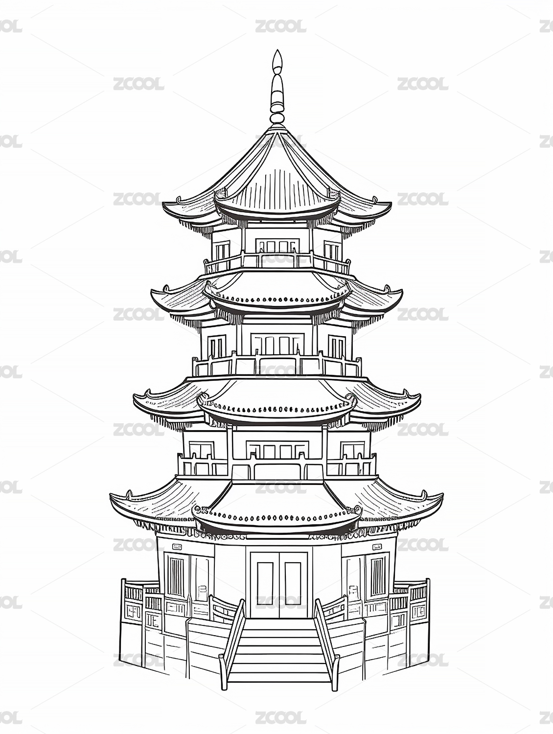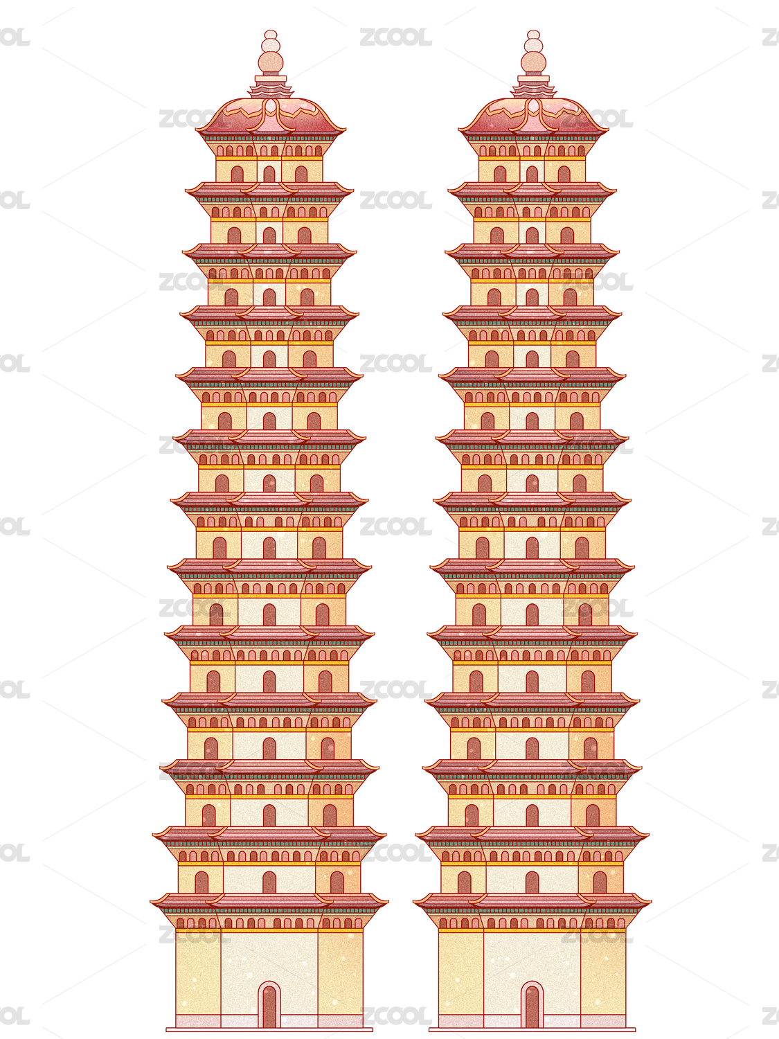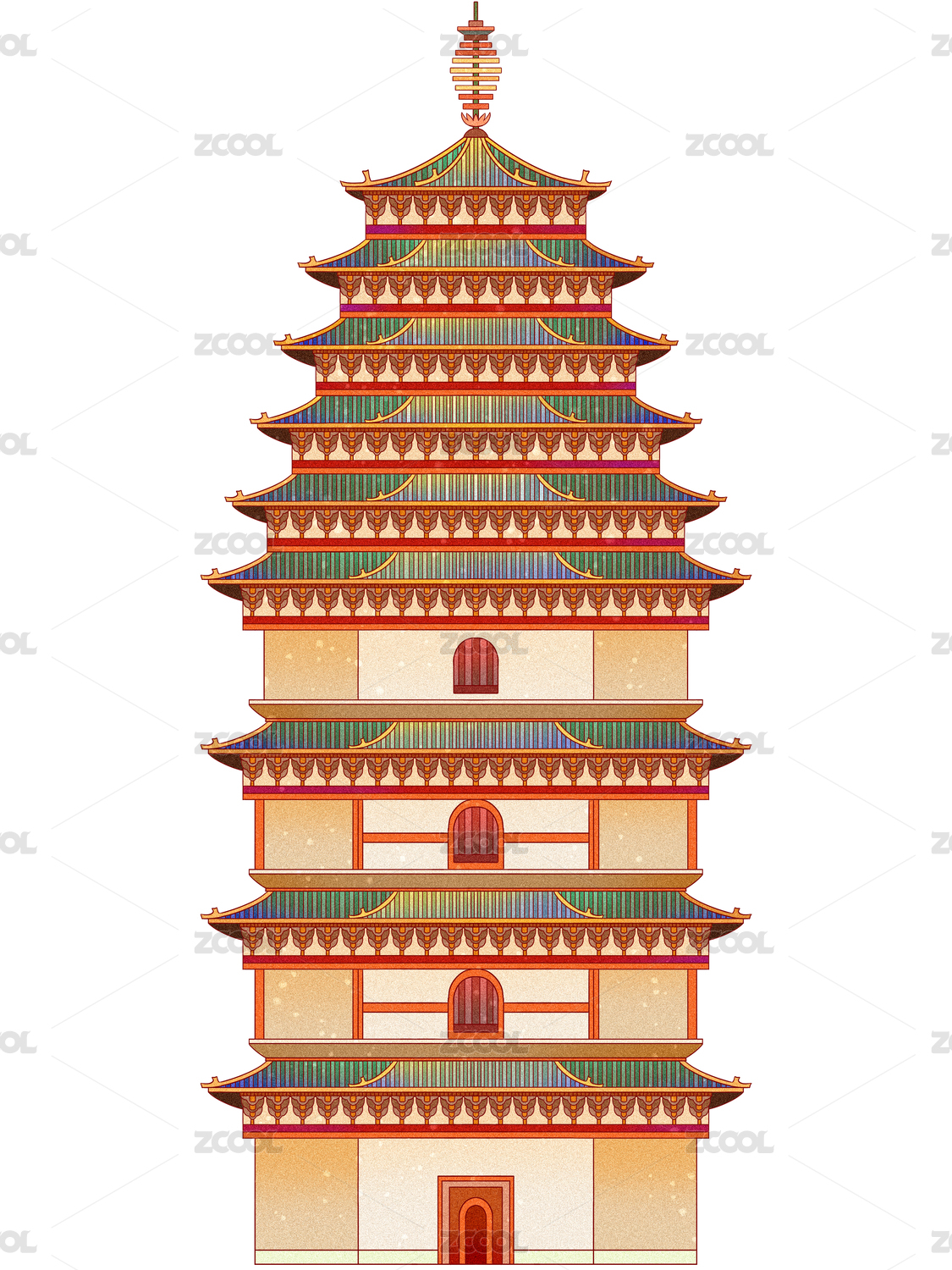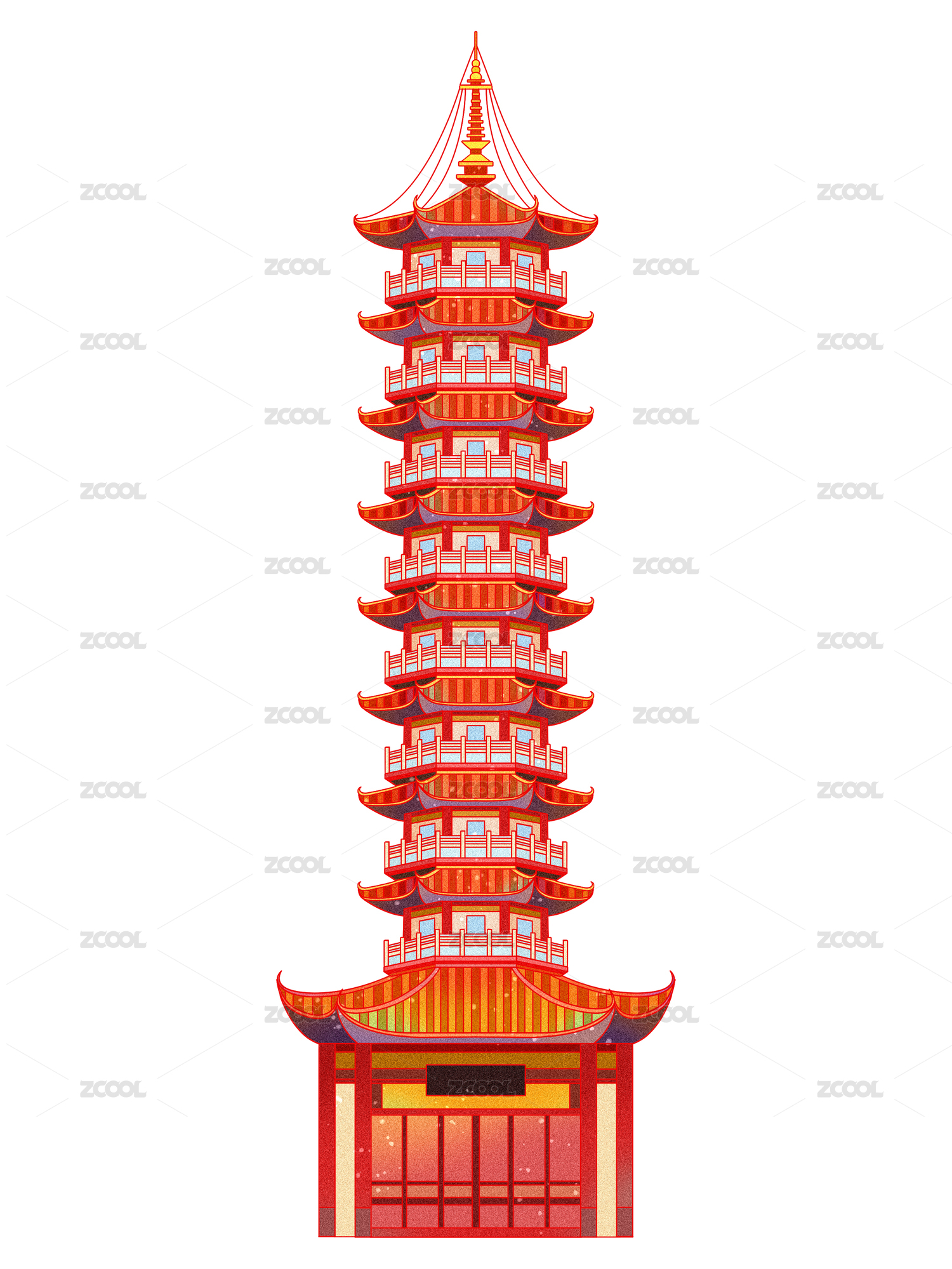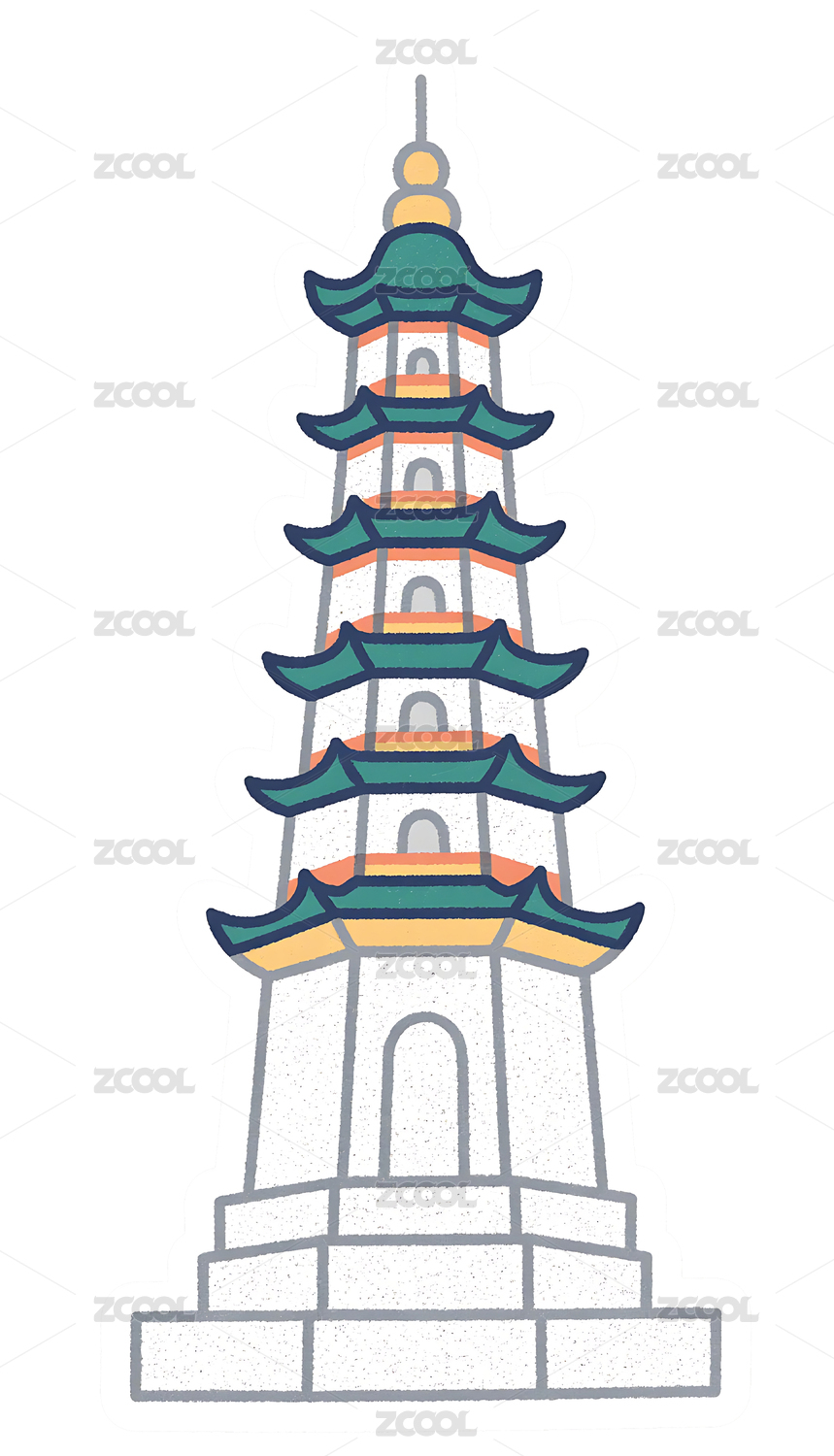 国潮传统文化插画中国风古建筑古楼阁楼凉亭