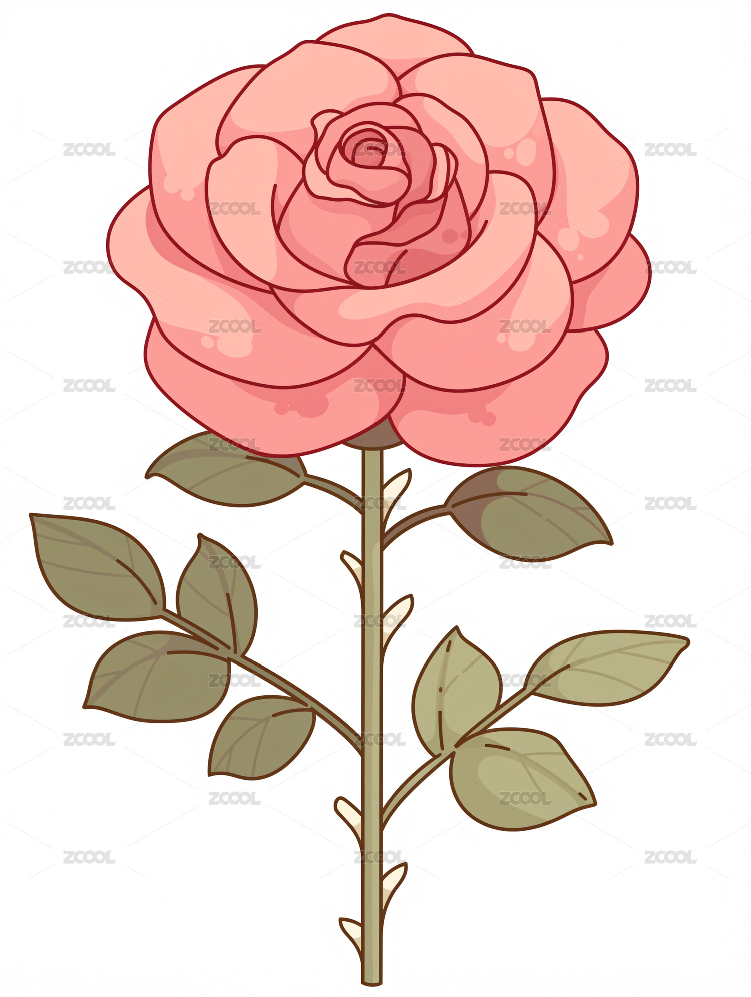 3款手绘风格玫瑰花PNG免抠素材