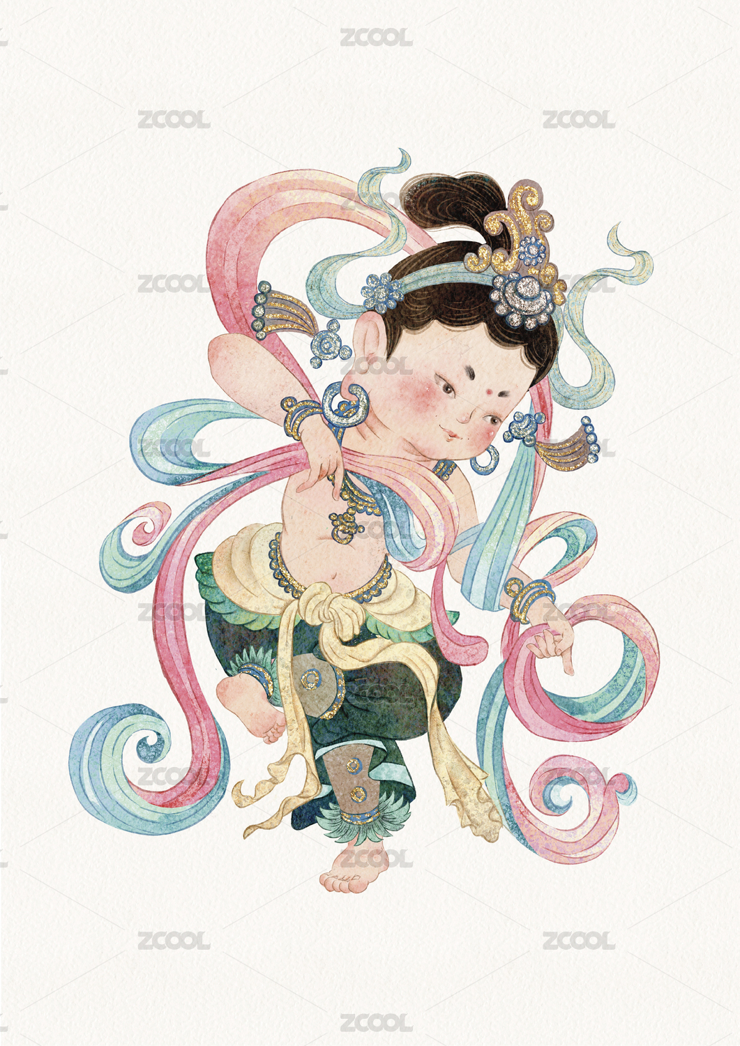 莫高窟壁画,飞天,可制作明信片,文件袋,帆布包等