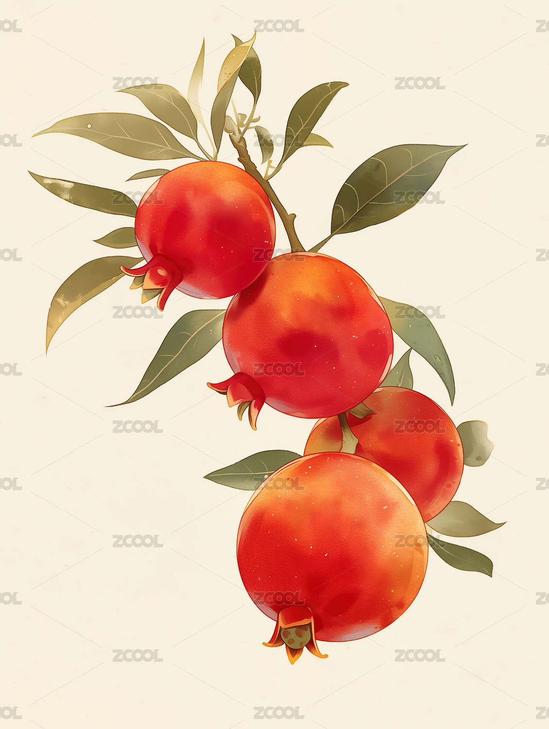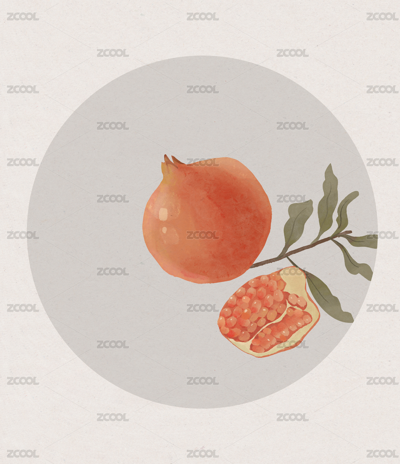 石榴 秋天 秋季 石榴水彩 中式 水墨 国潮 国风 创意 水果 红色 美食