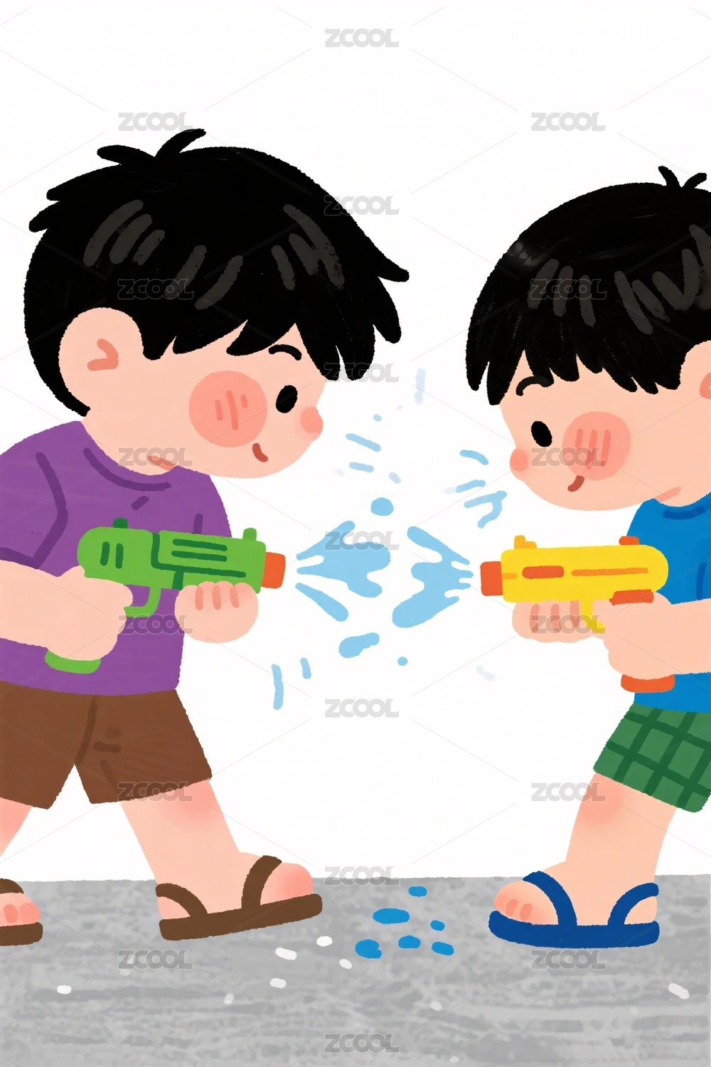 卡通水枪玩耍场景