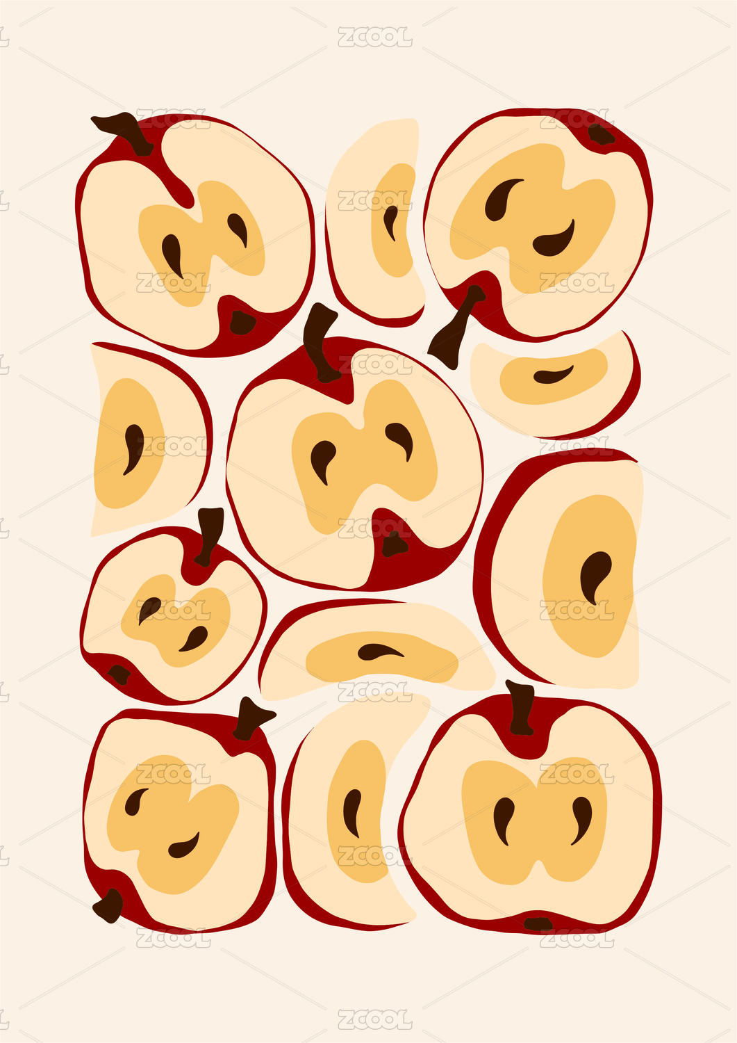 手绘苹果图案四方连续