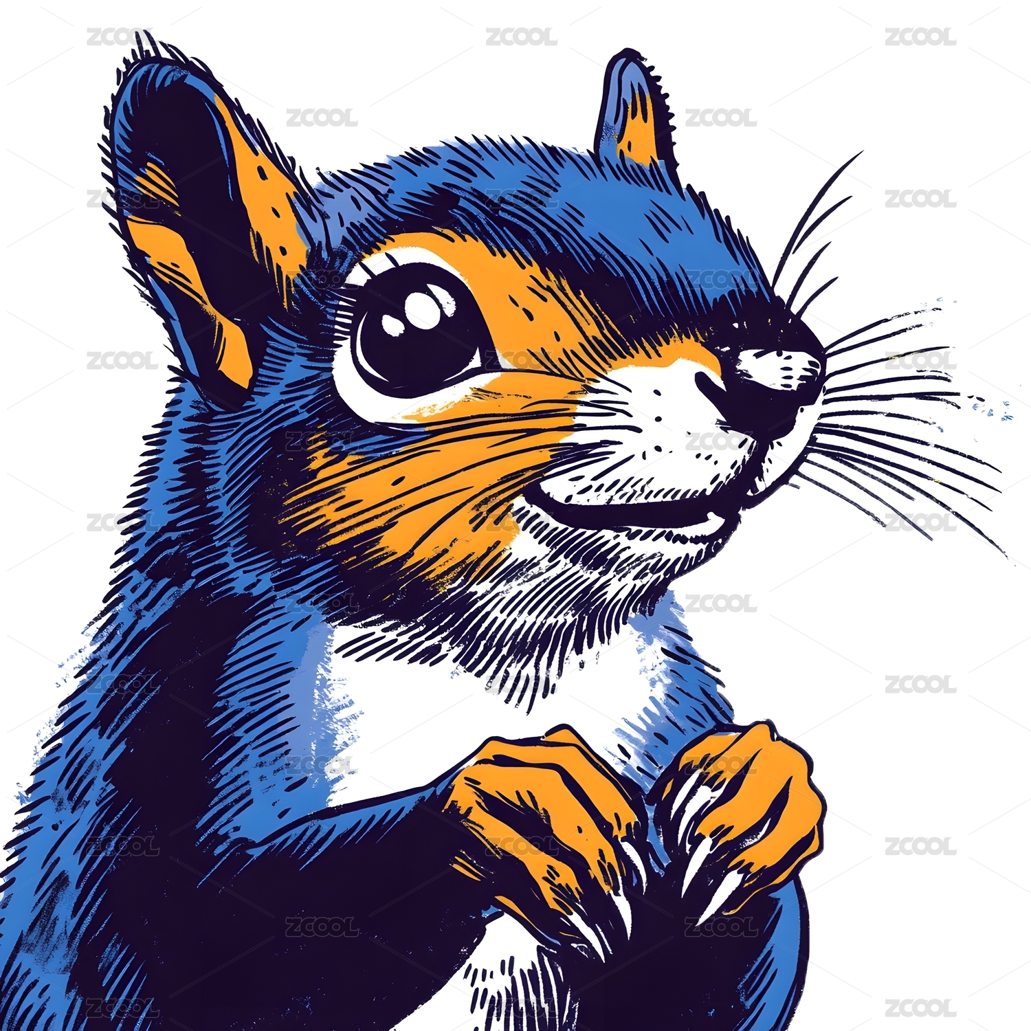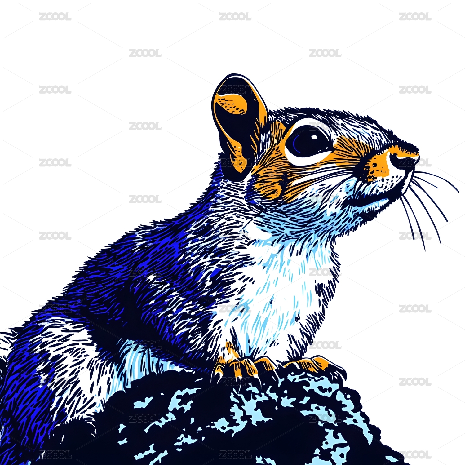 松鼠蓝色版画插画