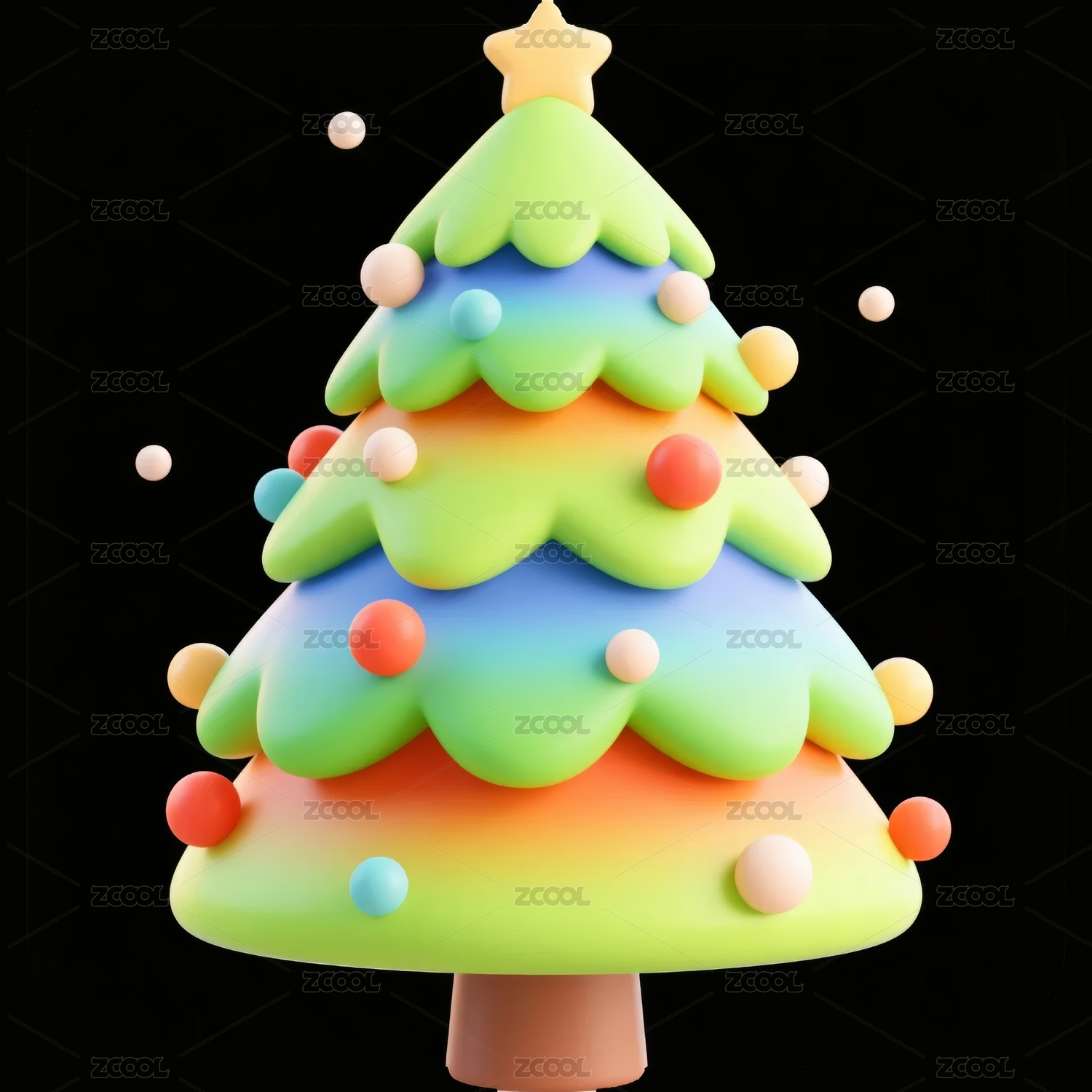 童话世界 两棵树 3D聚酯风 植物免抠通用素材PNG