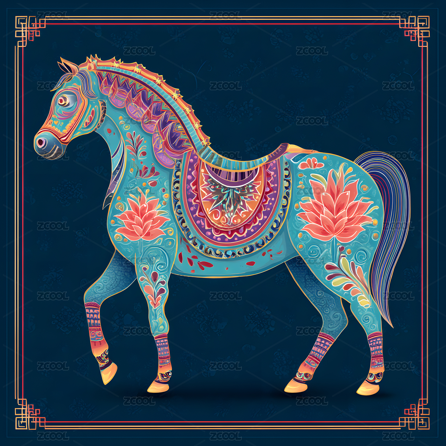 传统纹样马形象插画