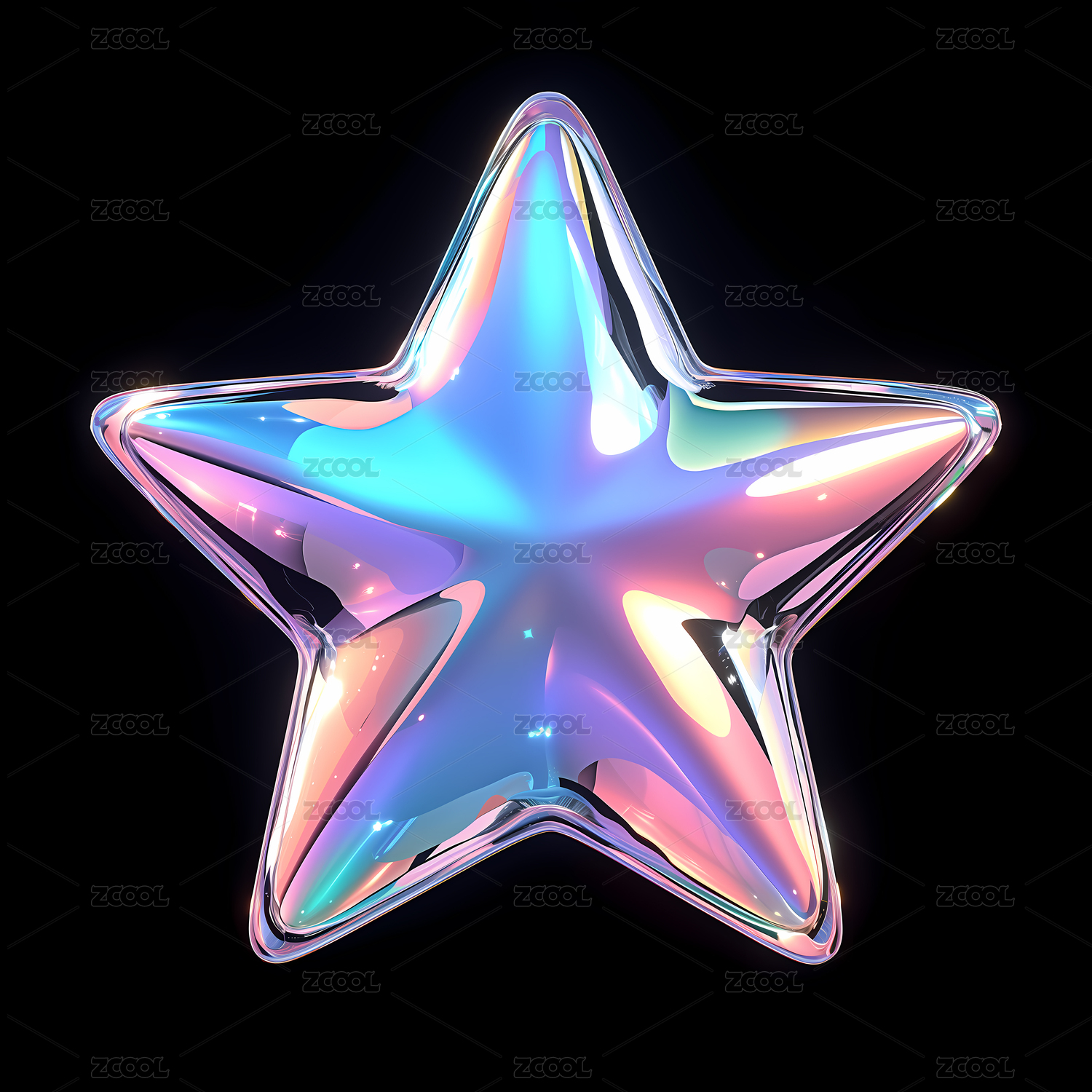 一个五角星全息色彩酸性设计三维物体